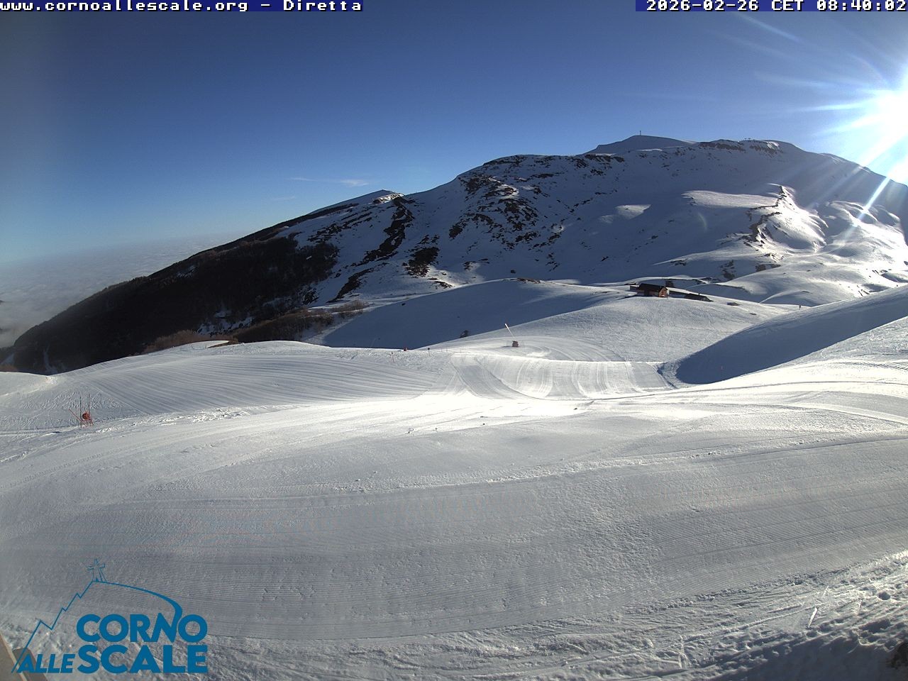 Archived webcam image showing Corno alle Scale Ski Resort - La Polla Slope on 26 Feb 2026 at 08:58 07:00
