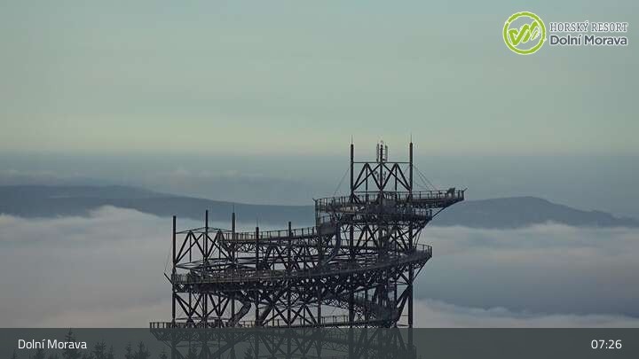 Archiviertes Webcam Bild: Dolní Morava: Sneznik Bergstation und Hängebrücke am 26 Feb 2026 um 08:17 Uhr 07:00