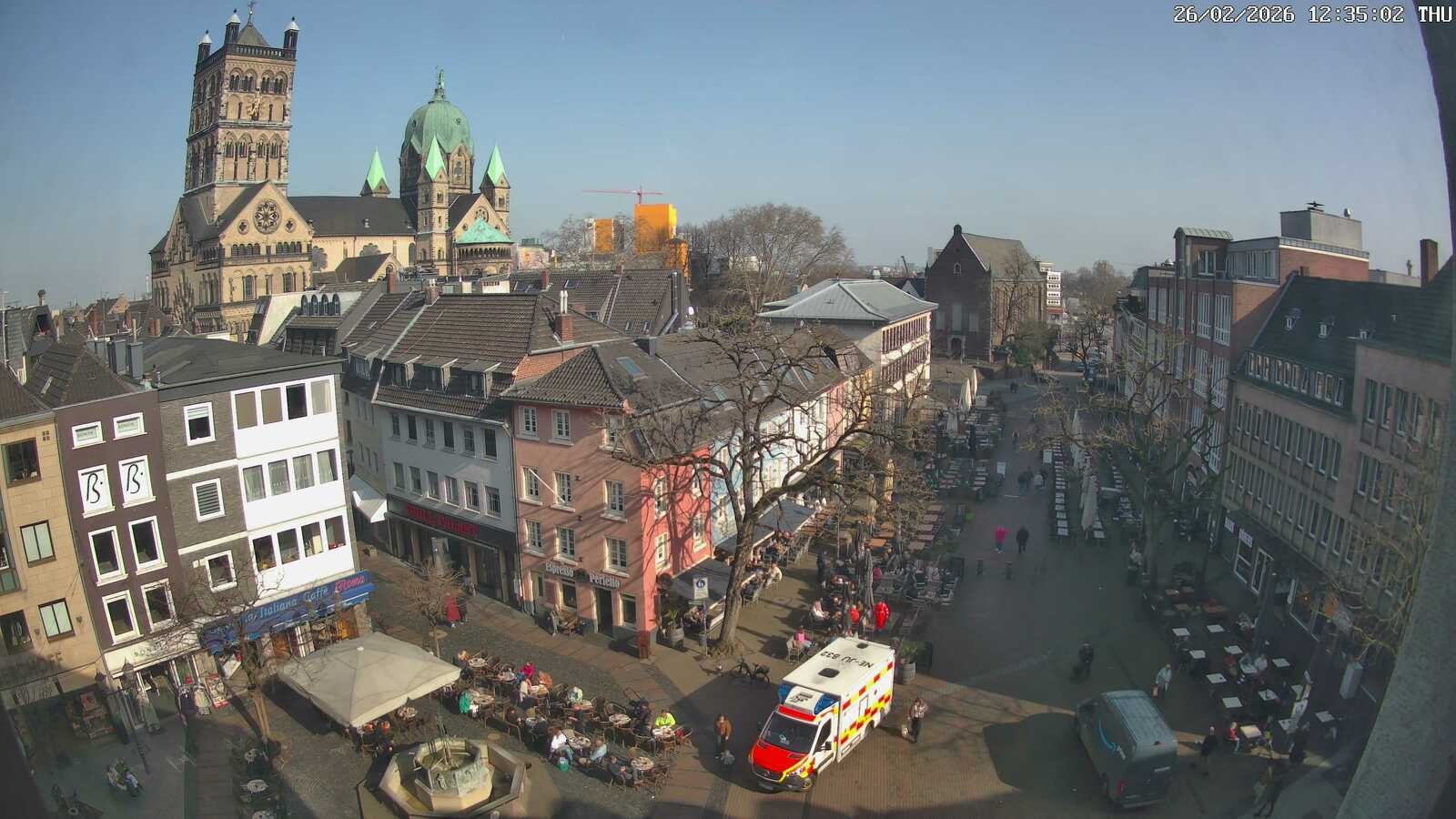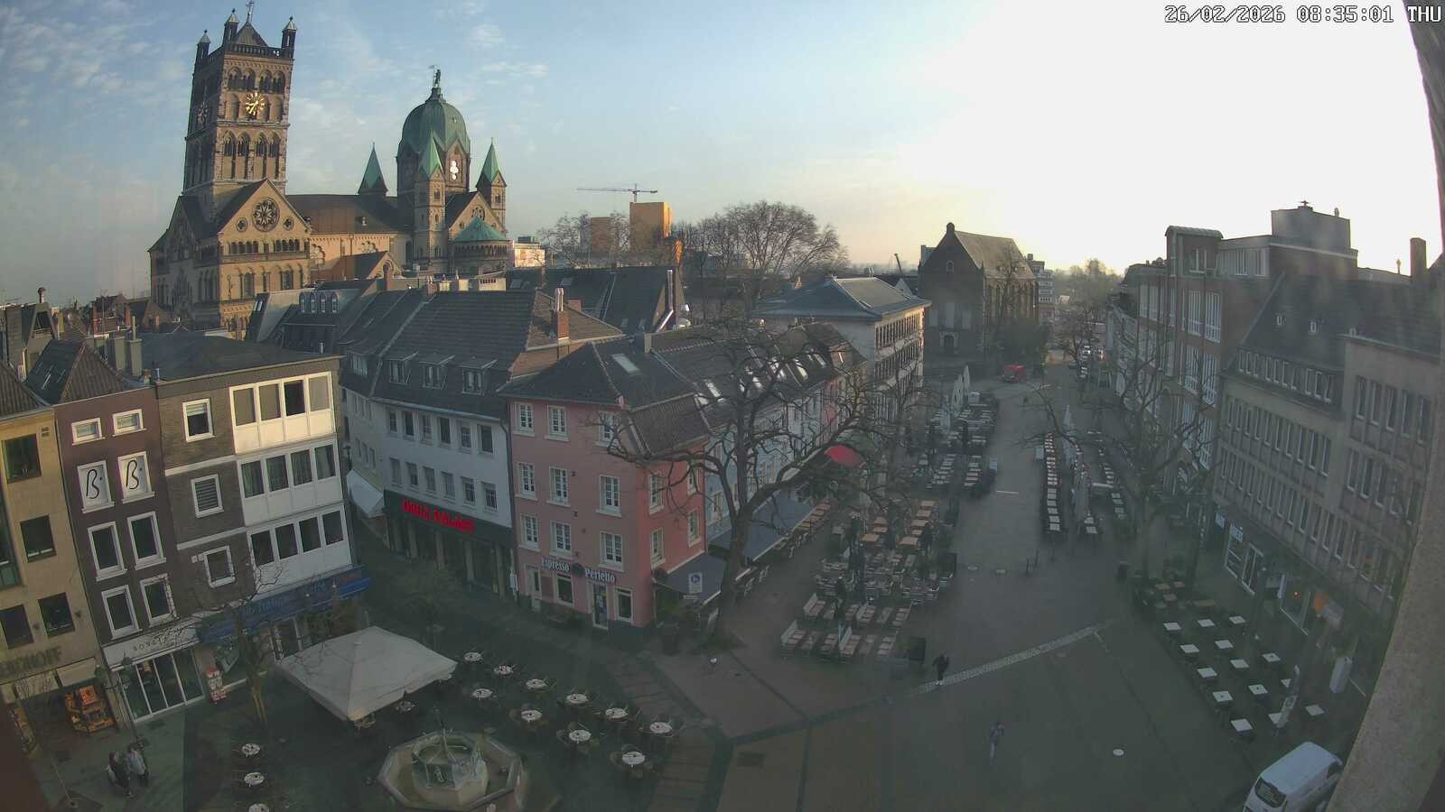 Archived webcam image showing Neuss: View at the Quirinus Church on 26 Feb 2026 at 08:56 07:00