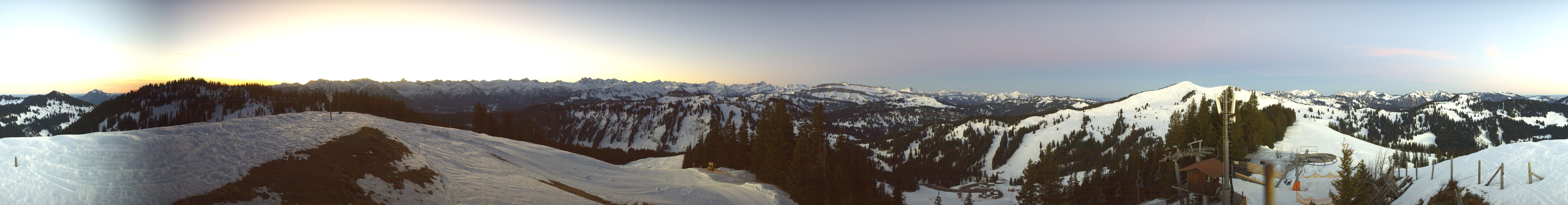 Archived webcam image showing Grasgehren: Panoramic view over the ski resort on 26 Feb 2026 at 07:42 06:00