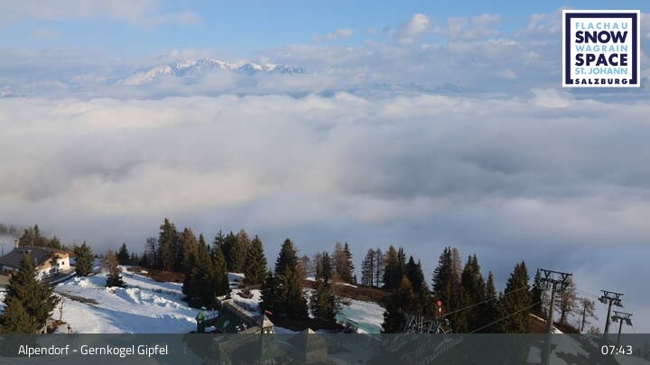Archived webcam image showing Alpendorf: Peak of mountain "Gernkogel" on 20 Apr 2026 at 09:05 08:00
