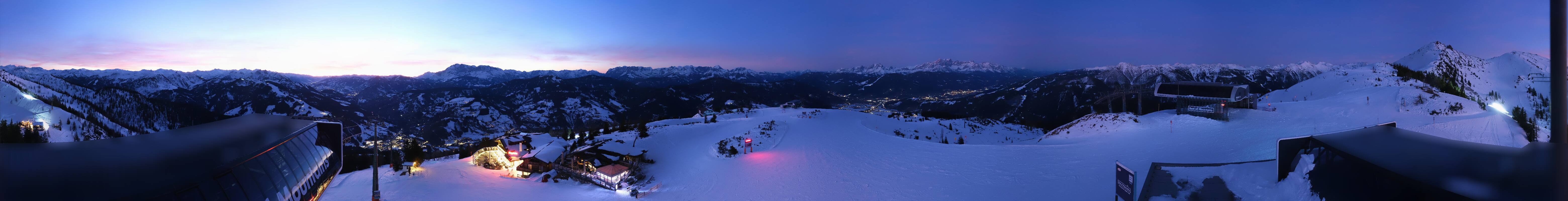 The webcam is located at the top station of the Flying Mozart gondola in the Snow Space Salzburg ski area at Wagrain. Among others, the Kogelalm and the Gipfelstadl as well as the Koglalmbahn, the Starjet3 mountain station and the Panorama Link cable car can be seen.