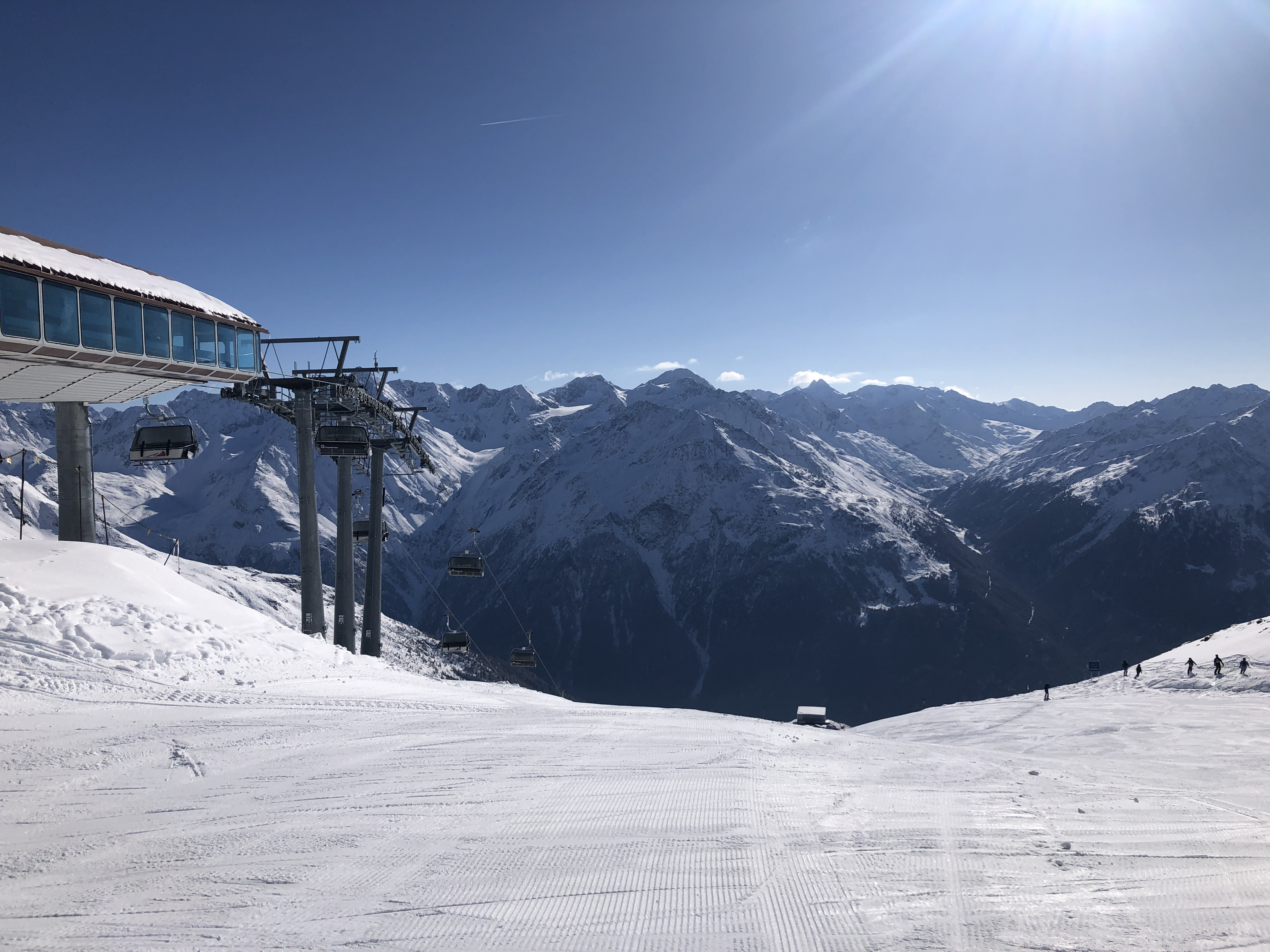 Probably the most interesting downhill run for experts is certainly piste 1 and 1b on the Gaislachkogl. Here there are also great opportunities for a detour into the terrain. In general, the Gaislachkogl is the most challenging ski mountain in the Sölden ski area. The Giggijoch area, on the other hand, is more for mile-eaters who want to go full throttle. But even a downhill run in the glacier ski area has its challenges. The World Cup downhill run on the Rettenbach glacier presents even the ski pros with a not to be underestimated task every year. You should definitely be in good shape, because at altitudes of up to 3,300 meters the air becomes noticeably thinner. Due to the unbeatable range of slopes and the beautiful panorama, Sölden gets a top rating in the "advanced" category.
