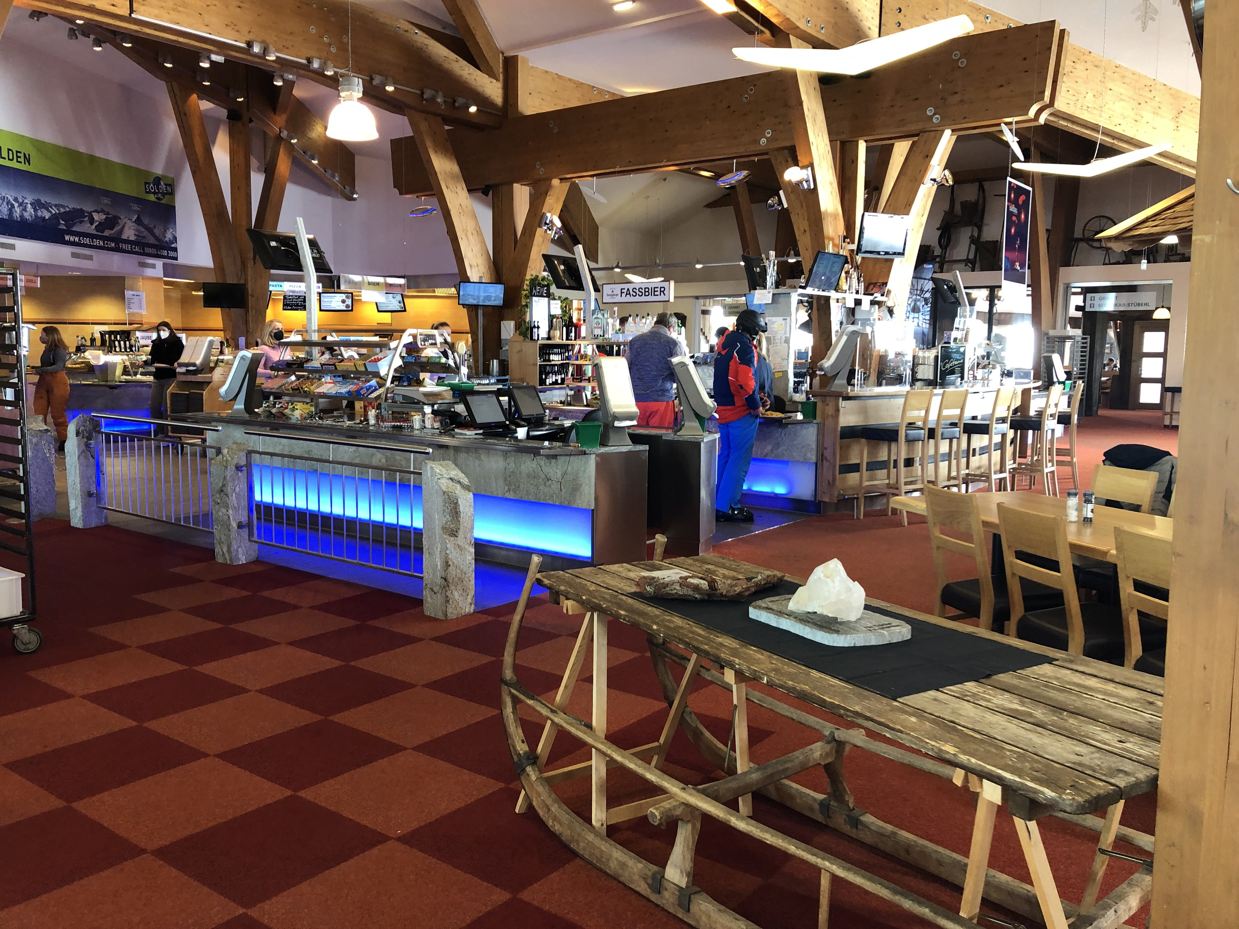 The gastronomic offer in the Sölden ski area is quite diverse. On the glaciers on the Retten and Tiefenbach glaciers, but also on the Giggijoch, the large restaurants tend to cater to the masses. The service restaurant "Wirtshaus Giggijoch" is almost lost in the shuffle. Here, mainly local specialties are served. In the new restaurant on the Rettenbach, however, you will also find a service restaurant on the 1st floor.