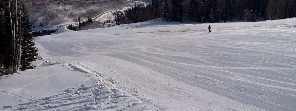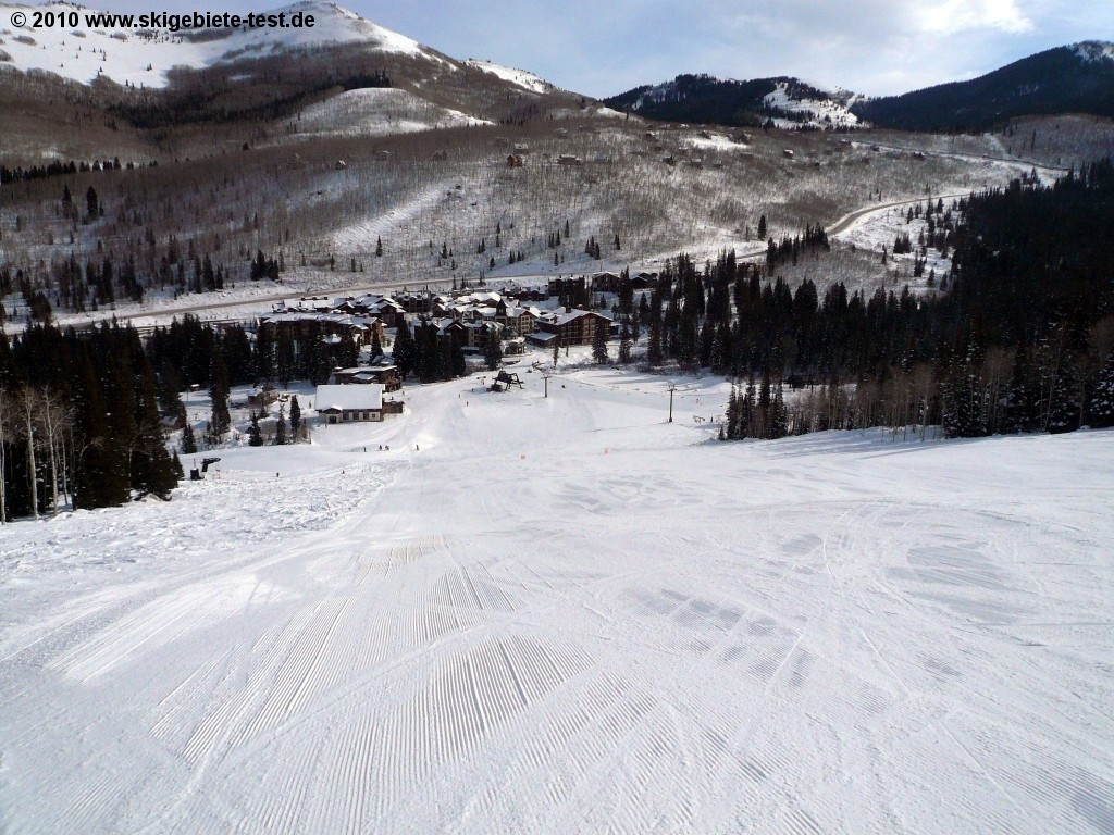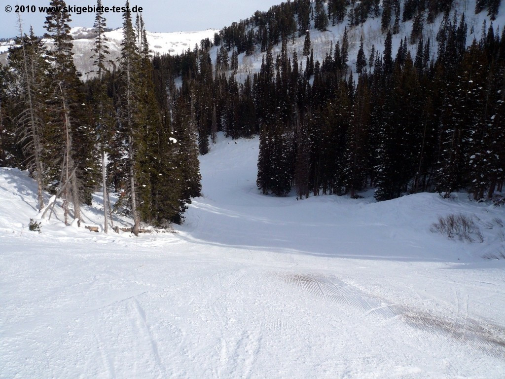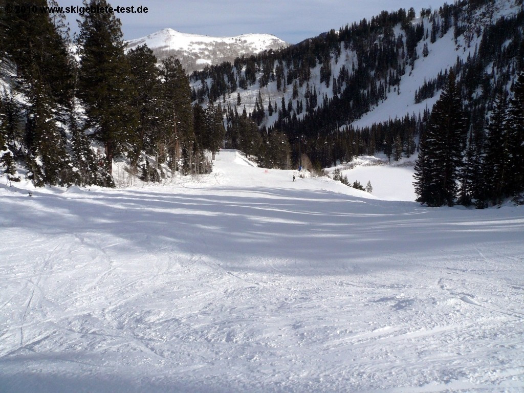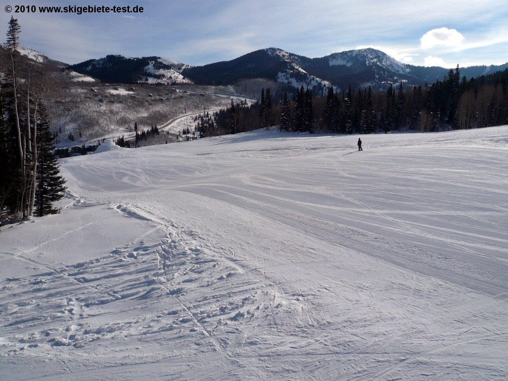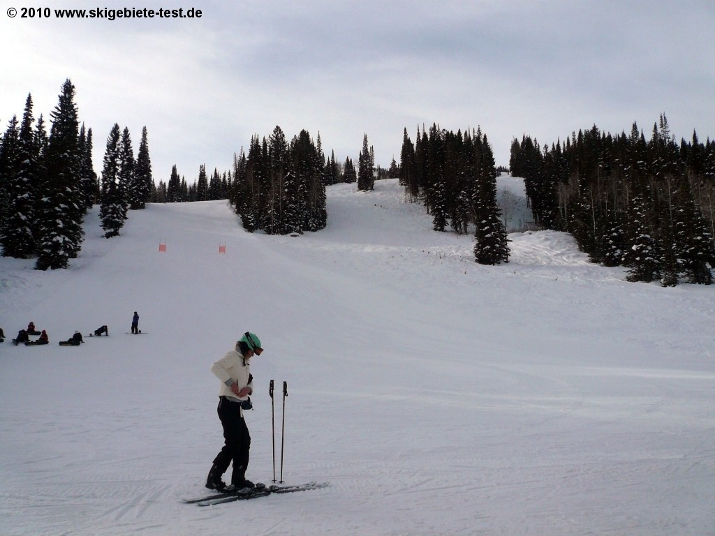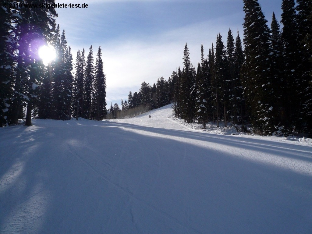 With 64 earmarked trails solitude is naturally not among the largest ski resorts in Utah. Just around Salt Lake City there are several resorts that are considerably larger. But especially for newcomers to snow-sports Solitude provides more than enough. Advantageous is the fact that the resort is less frequented than its competitors. The gentle trails are all made accessible by the “Moonbeam” quadruple chair which takes the novices to the well sounding easy trails "Little Dollie", "Pokey-Pine" und "Same Street". At the double chair another easy slope is at the beginners disposal, however the “Easy Street Trail” also functions as a connection between Solitude Village and the Moonbeam Base Area and is therefore highly frequented which might irritate inexperienced skiers. Those that have gained confidence on ski or snowboard can then venture into the grounds at the “Apex” and “Sunrise” chair lifts. The trails at the “Powderhorn” and “Summit” lifts however are too challenging for unskilled skiers and should therefore be avoided!