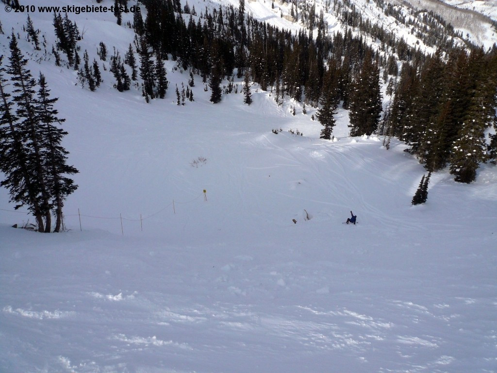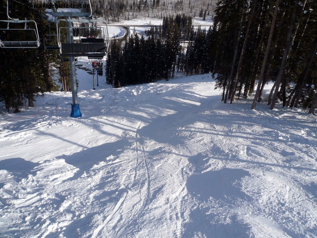After some warm-up descents on one of the intermediate trails earmarked blue, expert skiers can take the “Powderhorn” lift up to a handful of beautiful black steeps. You have the possibility to take the perfectly groomed “Diamond Lane” down into the valley. Alternately you can cross the “Eagle Ridge” to get to further carving terrain like “Paradise”, “Vertigo”, “Paradise Lost” or “Rhapsody”. Those who prefer ungroomed terrain will find excellent tree-skiing opportunities at the “Summit Lift” in the “Headwall Forest”. We especially enjoyed the Off-Piste-Area “Honeycomb Canyon”. The “Honeycomb Canyon” is the youngest part of the ski resort as it was integrated into Solitude in 2002. The Summit lift enables accessing this off-piste area. From the lift- exit pass along the mountain and look for the nicest descents down into the valley. Solitude is the perfect destination for all those that long for outback-feeling without wanting to put up with long hikes.