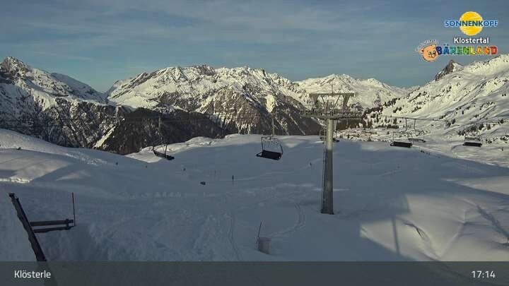 Archived webcam image showing Chairlift Riedkopf - Klösterle on 26 Feb 2026 at 17:16 Latest