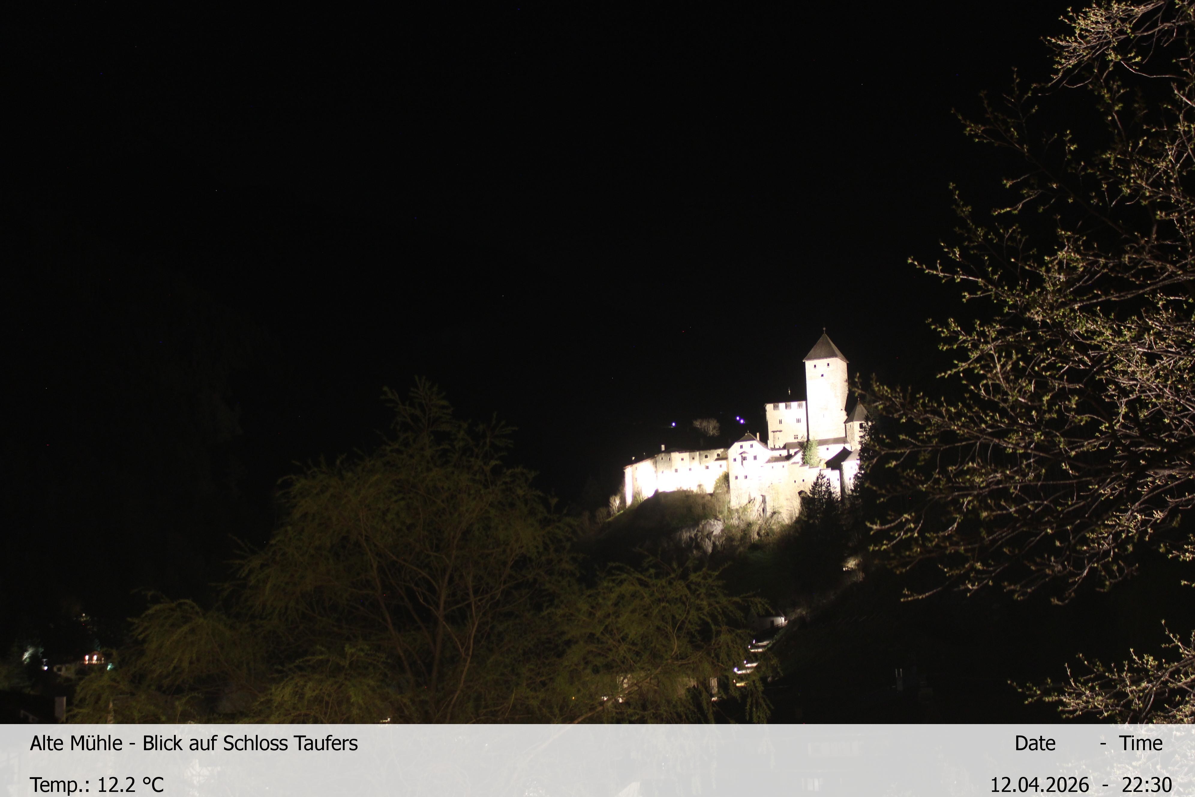Archived webcam image showing View towards castle Taufers in South Tyrol on 12 Apr 2026 at 22:16 Latest