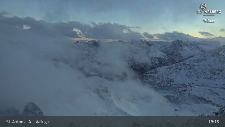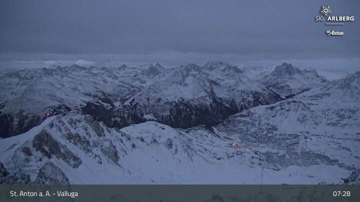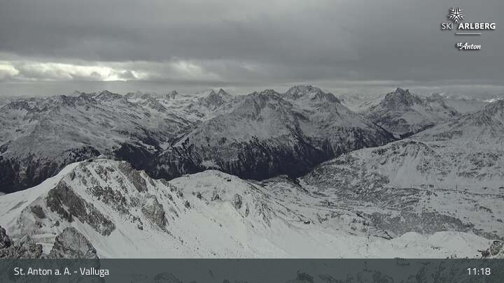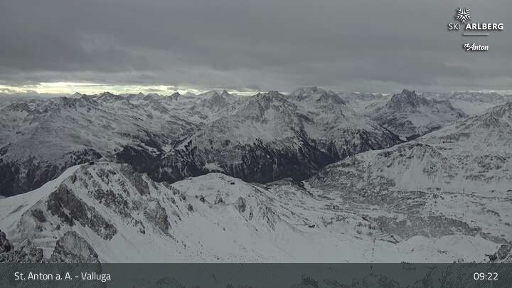 Panoramic view of Valluga mountain (2.809 meters) which is located in the western Lechtal Alps.