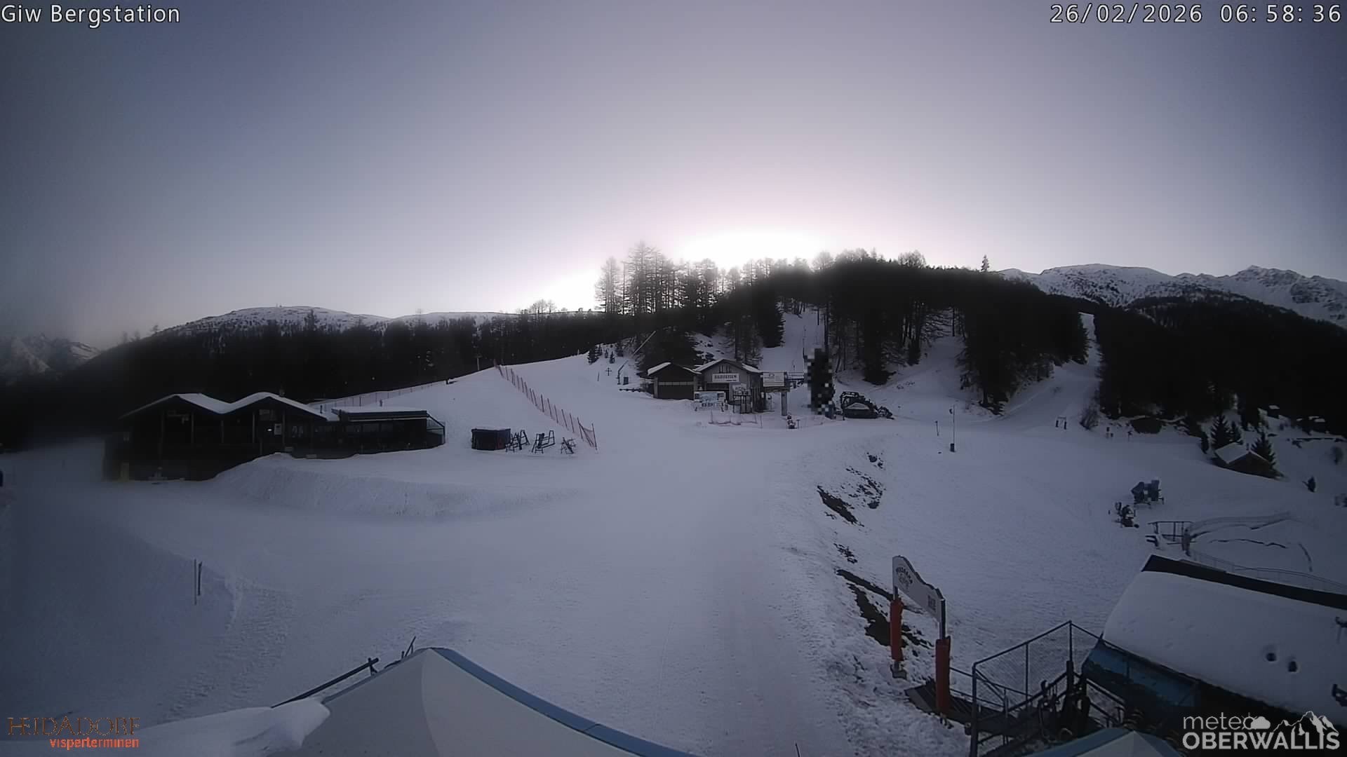 Archived webcam image showing T-bar Rothorn Visperterminen on 26 Feb 2026 at 07:13 06:00