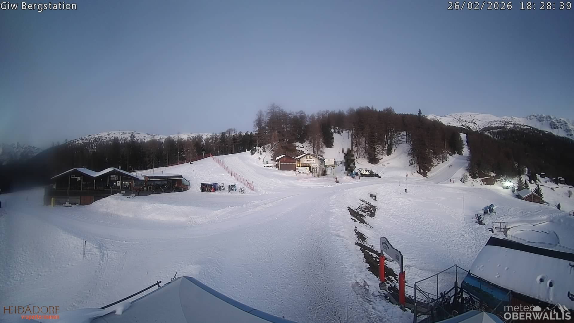 Archived webcam image showing T-bar Rothorn Visperterminen on 26 Feb 2026 at 18:13 17:00