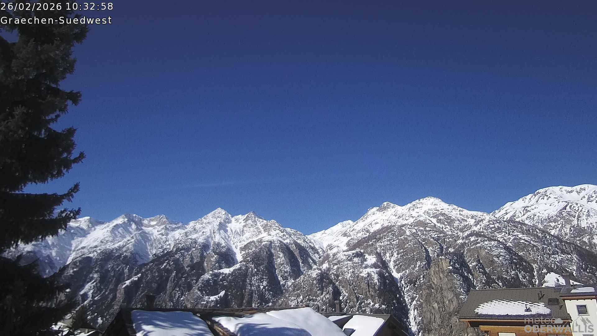 Archived webcam image showing Grächen - Weisshorn on 26 Feb 2026 at 10:42 09:00