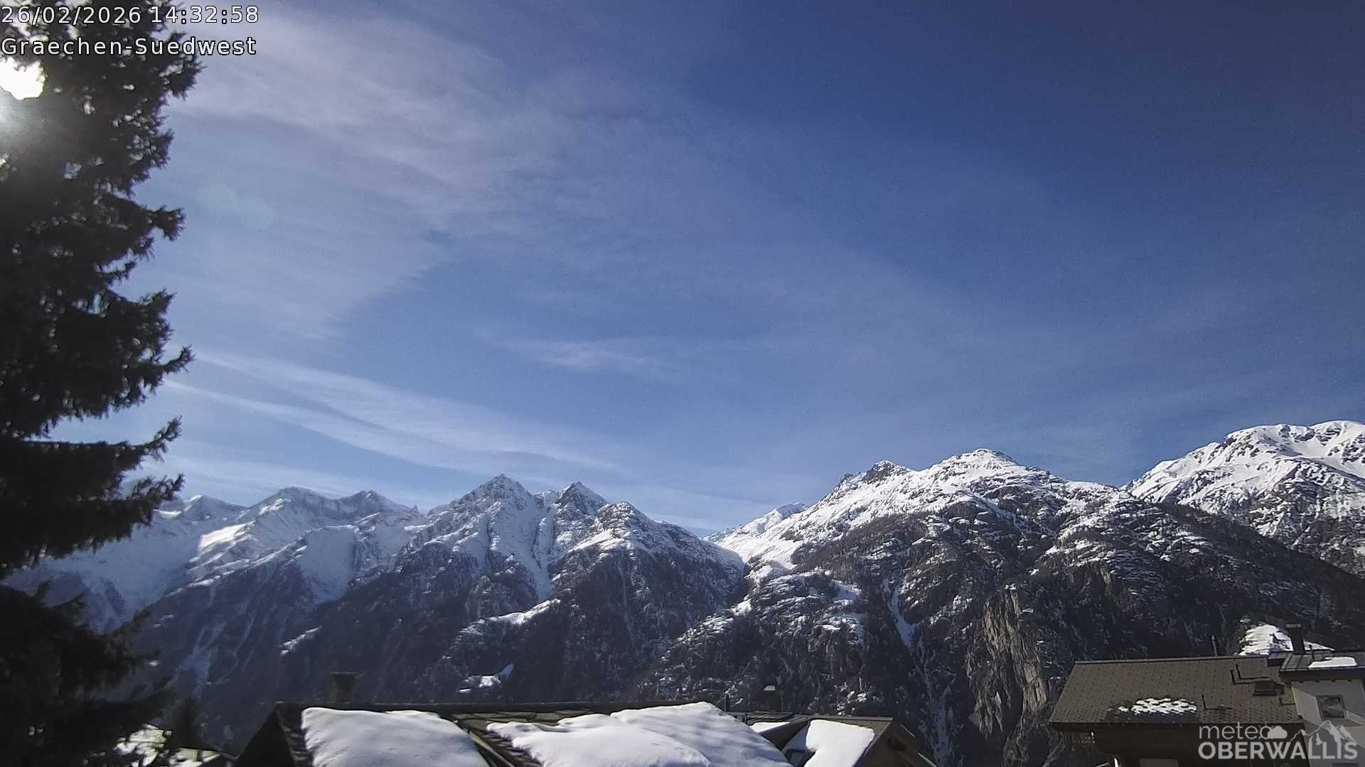 Archived webcam image showing Grächen - Weisshorn on 26 Feb 2026 at 14:42 13:00