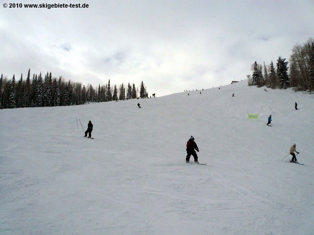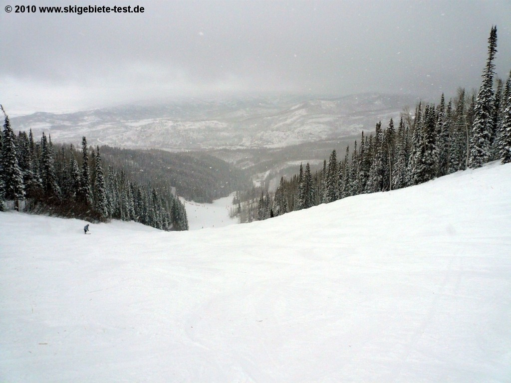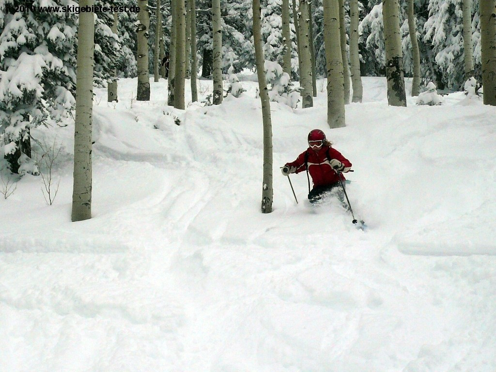 While ski experts in Europe or New Zealand are always on the lookout for always steeper tree-free terrain the ski resorts in Australia and USA attract by offering another kind of kick. The tree line in the Rocky`s is much higher than in Europe for instance. Steamboat is the most popular tree-skiing-resort in the US. Tree cover is not too dense therefore the ride through snow-covered forests will definitely enthuse any expert skiers. The nicest tree-runs are below the 3221m (10568 ft) high Mt Werner as well as at the “Sunshine Express” (see trail map). But keep safe and wear protection when venturing into the tree-grounds! Apart from skiable forests steamboat boasts some great mogul runs like the trails "Tornado", "Nelson´s Run" und "Twister" (below the “Four Points” lift). We especially enjoyed the racing courses “NASTAR” at the “Bashor” lift and “SEE ME” at the “Christie III Chair”. Test your skills on the tracks and compete with fellow skiers!