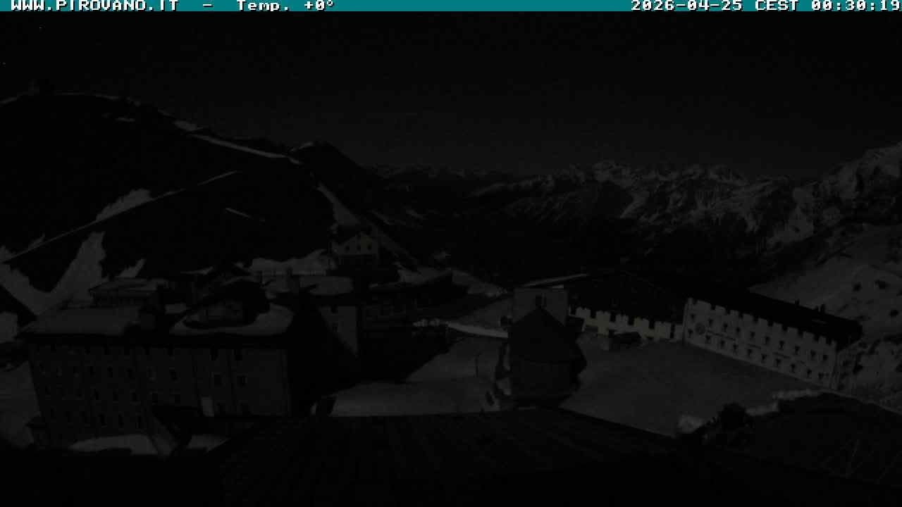 Archived webcam image showing Albergo Quarto Pirovano, Passo Stelvio on 25 Apr 2026 at 00:24 23:00