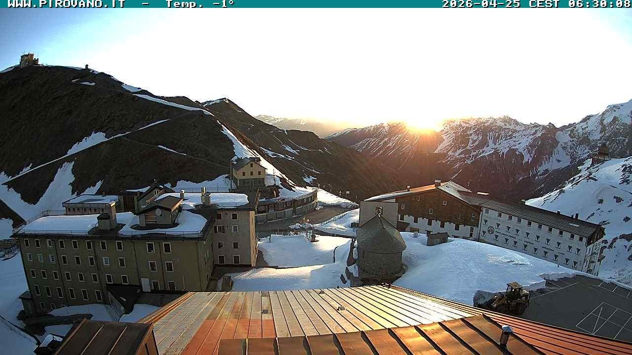 Archived webcam image showing Albergo Quarto Pirovano, Passo Stelvio on 25 Apr 2026 at 06:24 05:00
