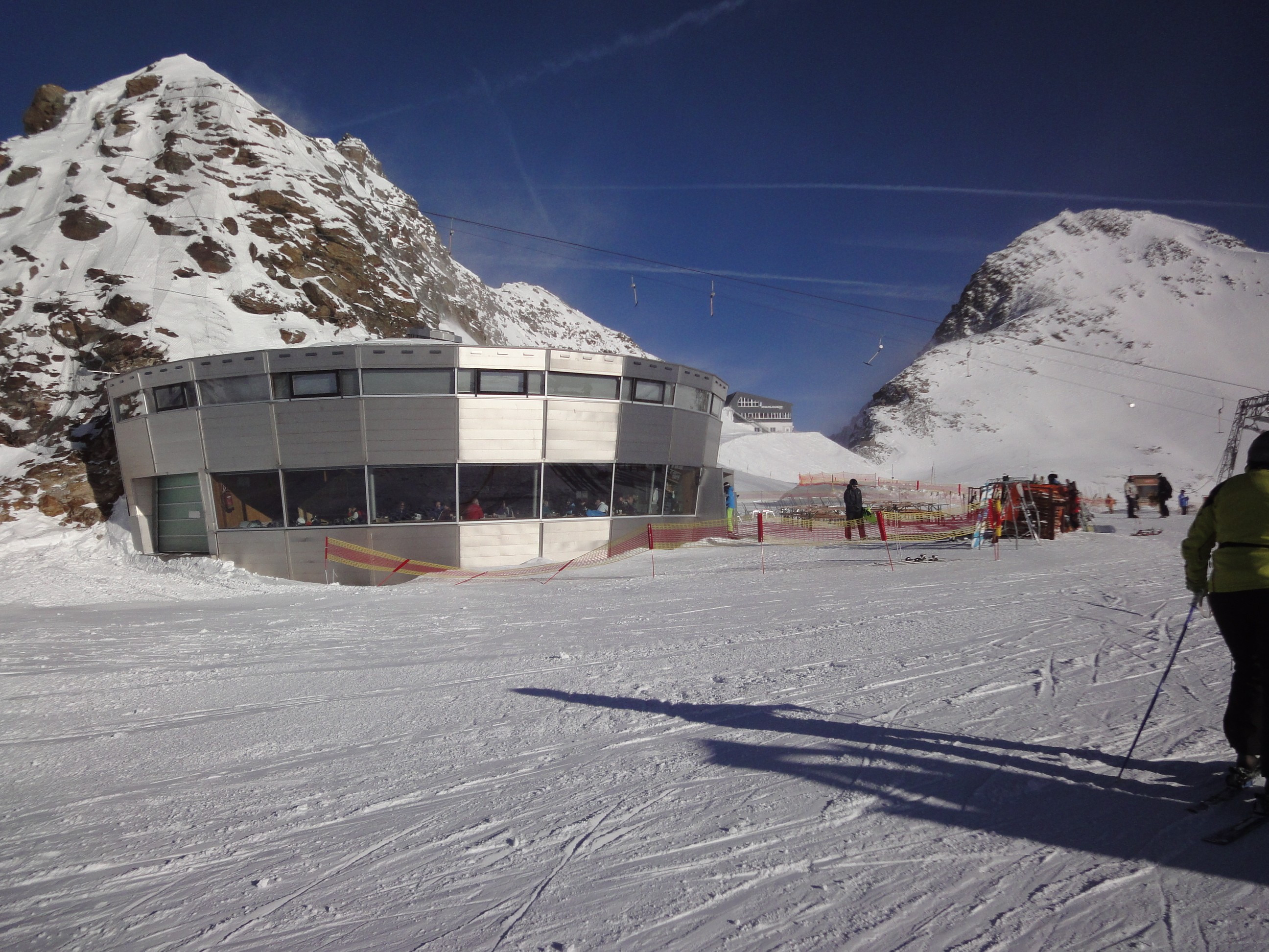 Restaurant SB Gamsgarten (base station Eisjoch chairlift), Restaurant SB Eisgrat (base station Eisjoch 2 surface lift) and Restaurant Jochdohle at the highest point in the ski area offer three separate self-service options for visitors. Restaurant SB Gamsgarten is the largest restaurant in the ski area with space for 500 people inside and over 1000 seats in the outdoor area. The most popular dishes here are typical ski favourites like spaghetti bolognese, kaiserschmarrn and wiener schnitzel. Bergrestaurant Jochdohle is substantially smaller. Yet despite its more compact size, on a clear day the restaurant offers panoramic views of over 100 mountains measuring 3,000 metres or above. The Jochdohle, at an altitude of 3150 metres above sea level, is on the transitionary slope between the southern runs on Gaisskarferner and the trails back into the main area down from the Schaufeljoch lift. It is the highest restaurant in all of Tyrol. The food here is relatively simple, though people love to come for the "XXL Wienerschnitzel”. The Skihütte am Bödele also offers snacks and drinks if you fancy a break between runs.