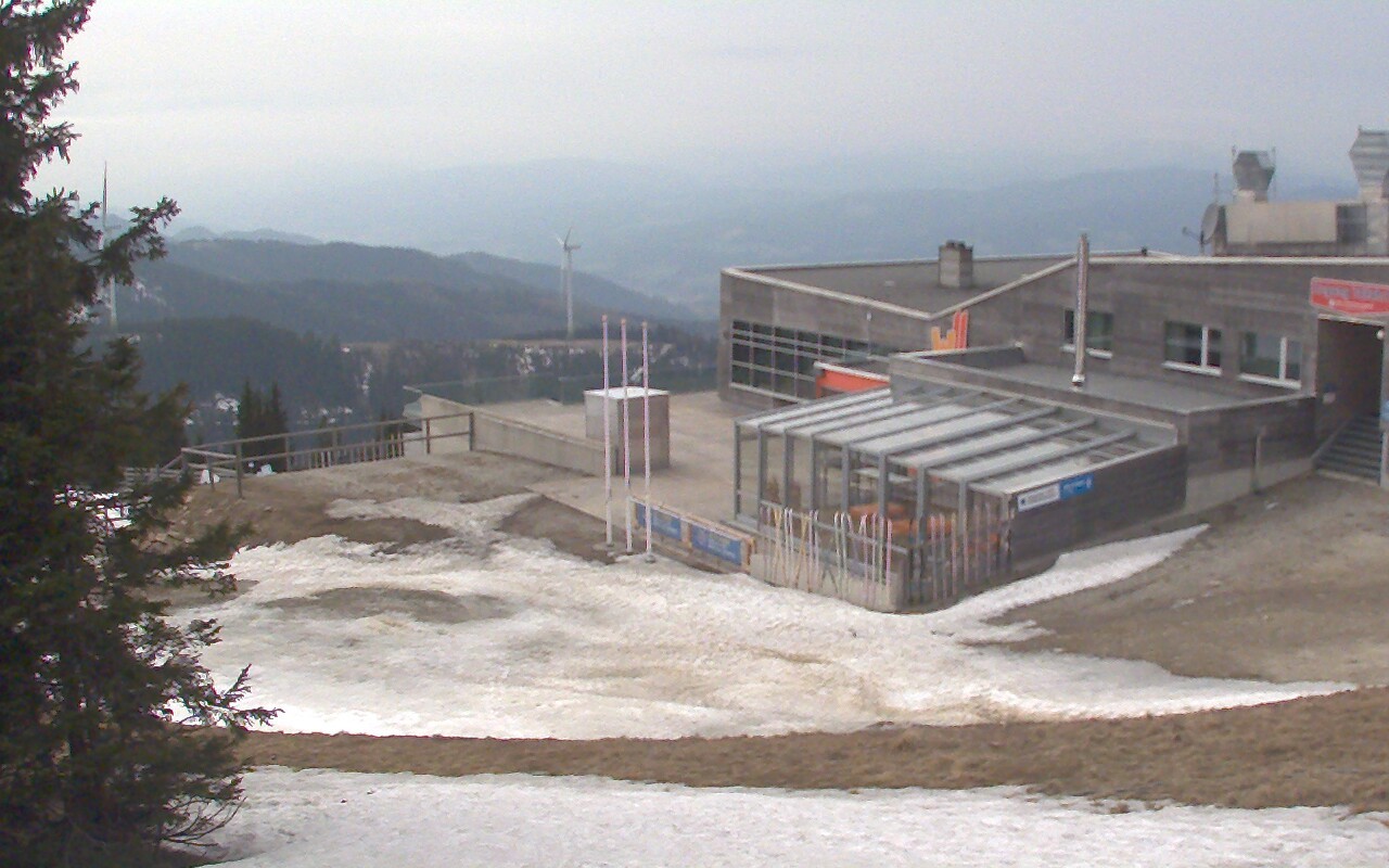 Outlook at the panoramic restaurant W11 at the top station of the lift Weißenelfbahn