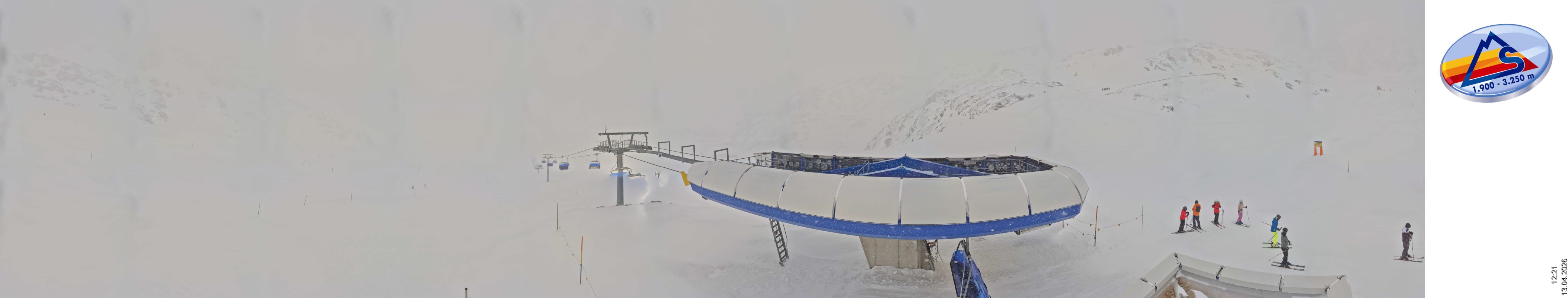 The webcam is located at top station of chair lift Madritsch in the Sulden ski resort.