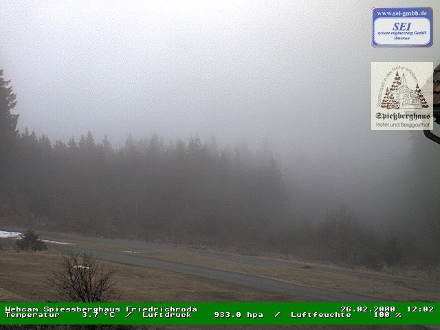 Archived webcam image showing Mountain restaurant "Spießberghaus" on 26 Feb 2026 at 10:24 09:00