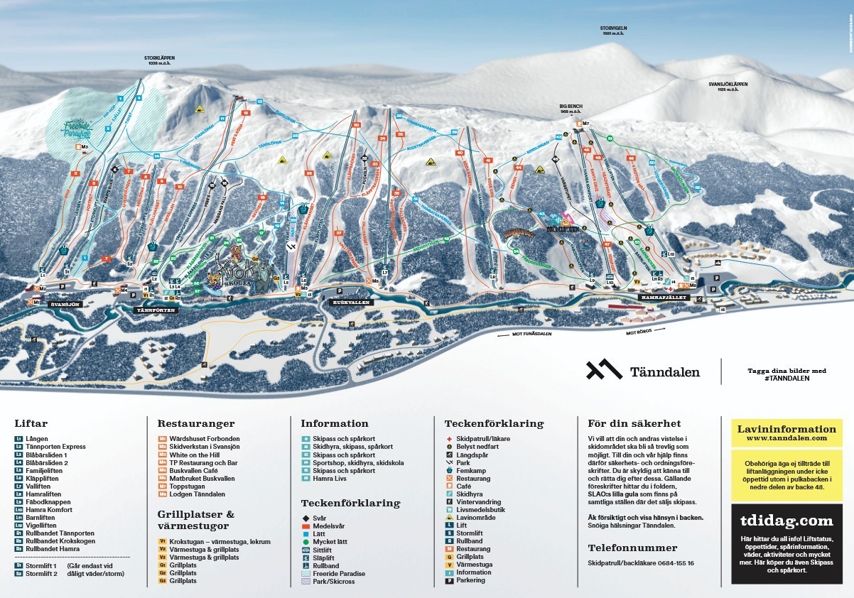 - Offering 38 km of slopes and terrain, Tänndalen is among the 10 largest Ski Resorts in Sweden.