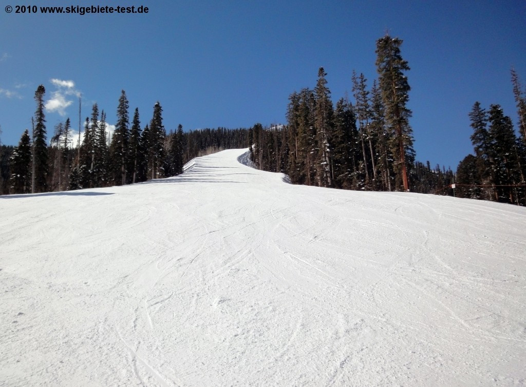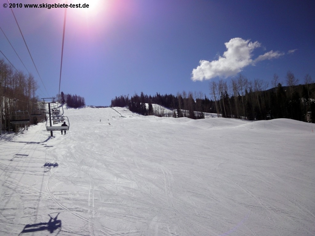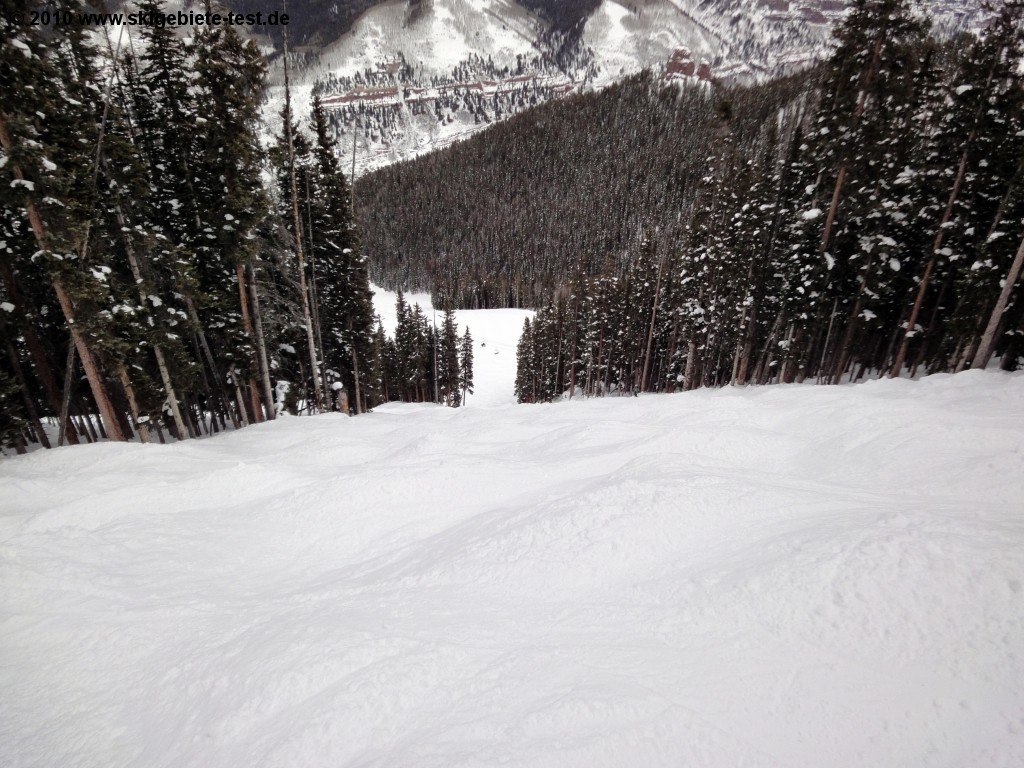 Whereas vacationers in Europe start complaining when the slopes start getting wavy in the afternoons, in America, man-high bumps in the trails are often described as 'perfect slope conditions.' At Telluride you'll find moguls, particularly off lift 9 (The Plunge), that will get even the best of skiers' quads burning. If you stick to the blue trails (in the US, the intermediate trails, and not the easy trails-as in Europe- are marked blue), you'll find quite a few very well-groomed carving slopes off of lifts 4 and 5. A great example and a real highlight is Lookout, which branches off of See Forever and can be reached with lift no.9. Here you might feel a bit like you're merging fast onto the autobahn, surrounded by thick forest. We do, however, need to mention that Telluride's main strong point are its numerous black diamond runs. If you're planning on spending all your time on the groomed slopes, and are scared to death of moguls, you'll probably run out of options after the first day.
