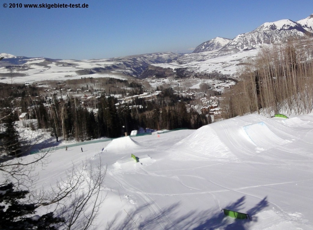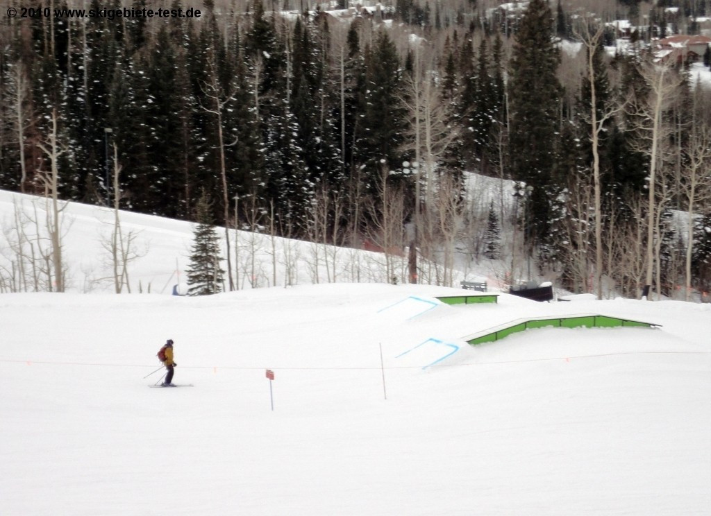 Snowboarders love powder. Like we mentioned in the Freeriding/Experts category, a good snowfall creates endless off-piste options on the western side of the ski area. And air & style fans will also find a few things to keep them entertained as well. A total of three freestyle terrain parks and one halfpipe have been installed on the mountain. Those still somewhat intimidated by big kickers can practice in the beginner-friendly Ute Park off the Ute Park chairlift. The intermediate park, which can be reached using the Polar Queen Express, is, hence its name, most suited for more practiced snowboarders and freestylers. The kickers the size of houses in the Hoot Brown terrain park, however, are best left to the real cracks. Hoot Brown, with its extremely challenging jumps and rails can be found off of the Village Express lift (no.4), and is also home to one of the largest superpipes is all of North America.