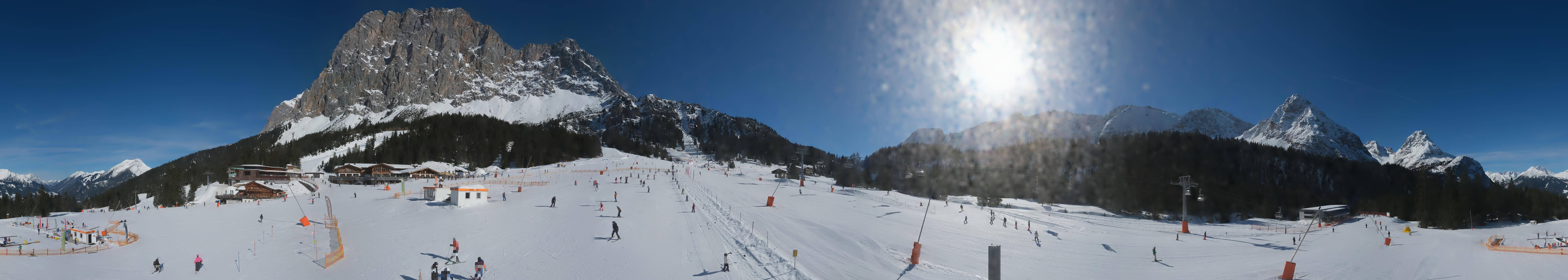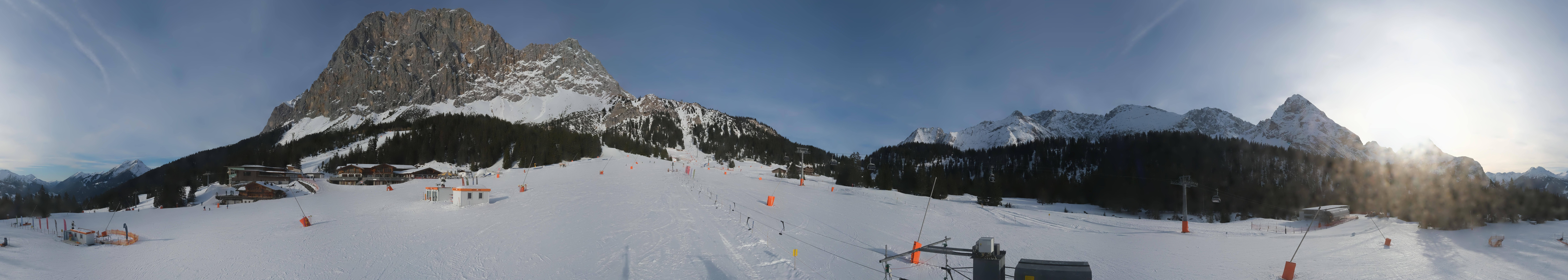 This webcam gives you a good Panoramic view over the Ehrwalder Alm. You can see the terrain park.