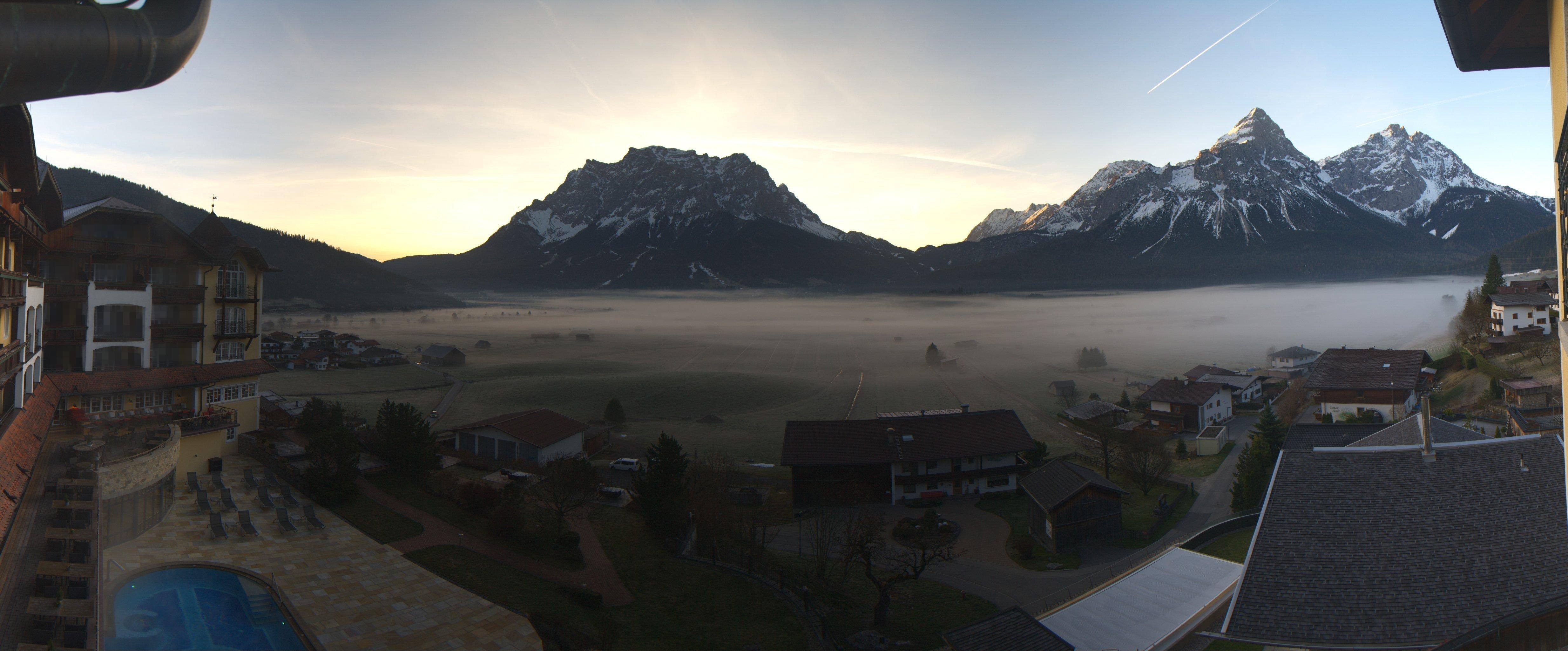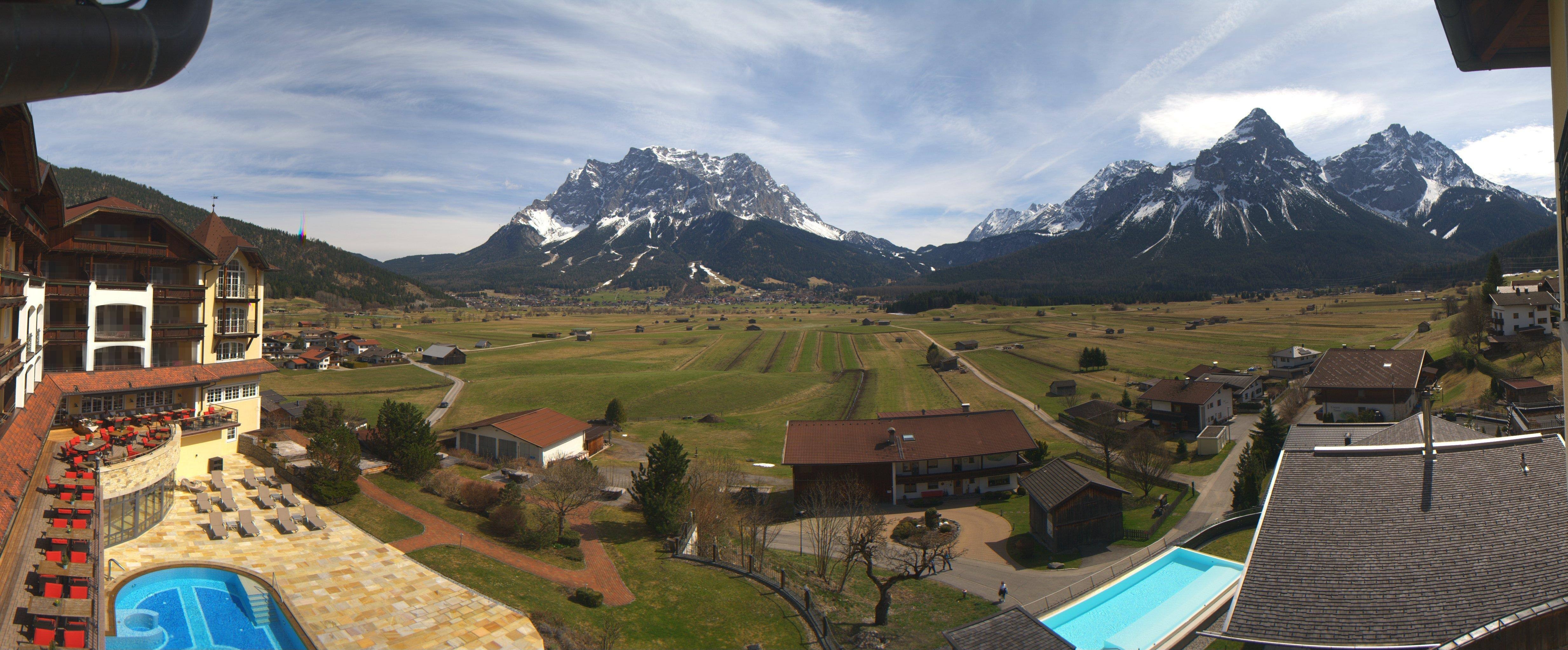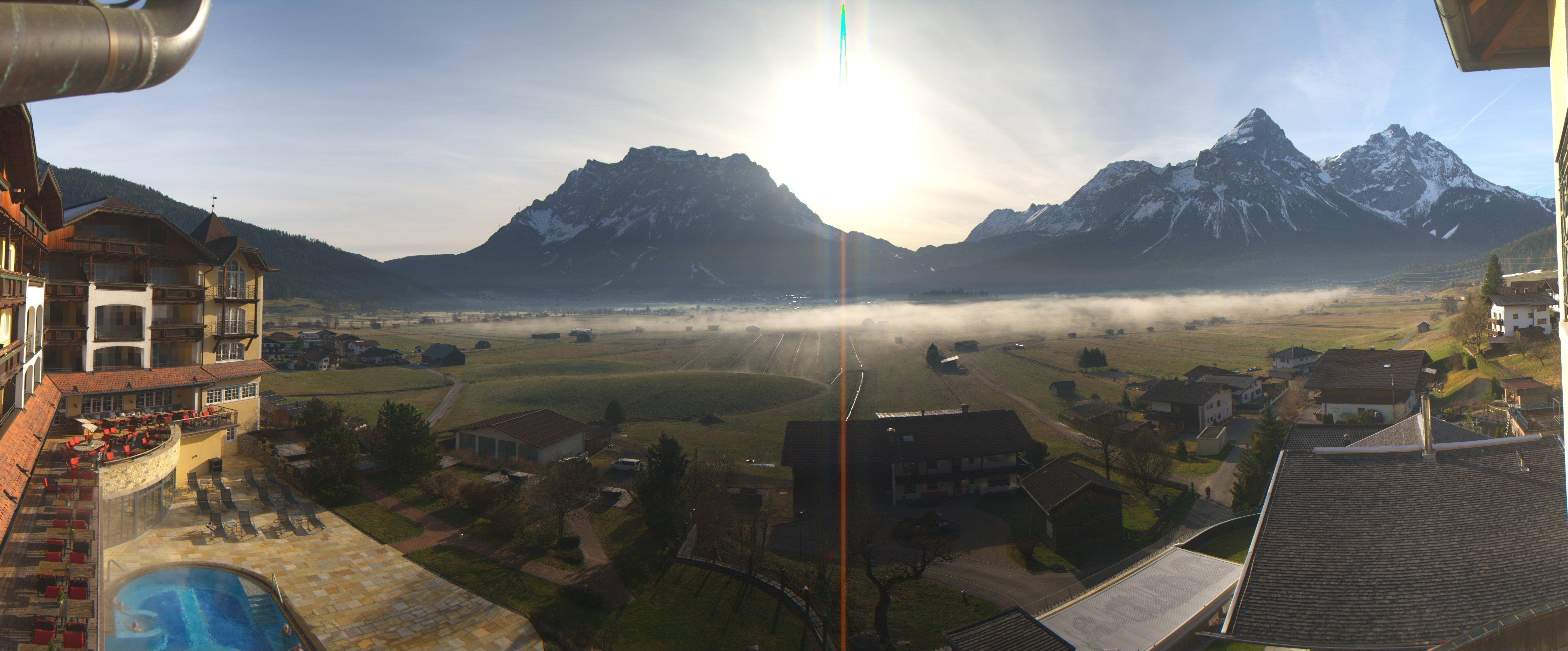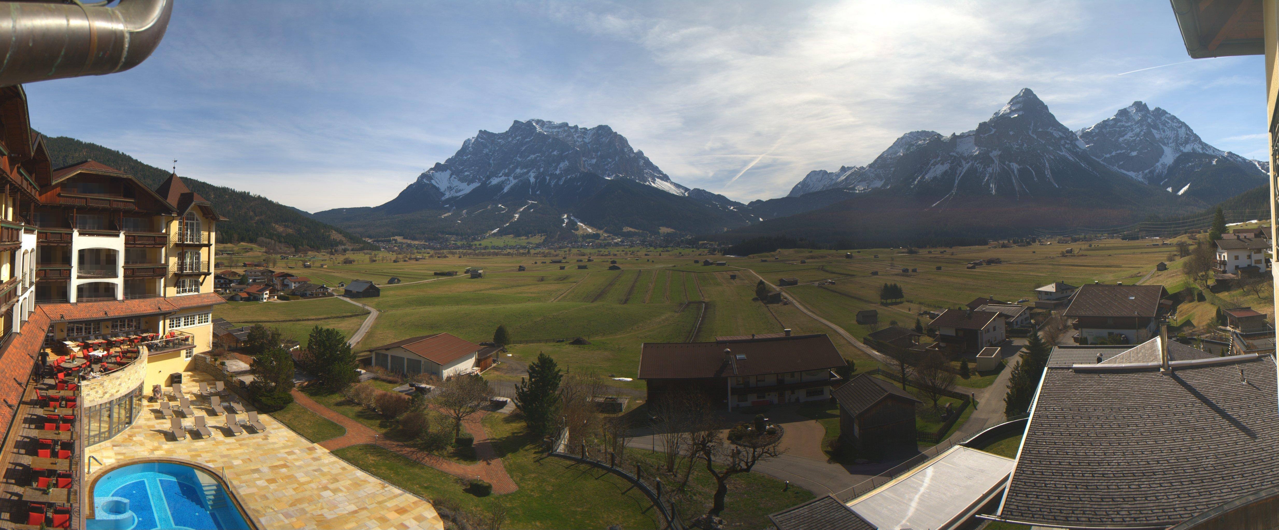This webcam is situated by the Hotel Post in Leermos and gives you a beautiful Panorama over Germany's highest mountain: the iconic 2962 Meter Zugspitze.