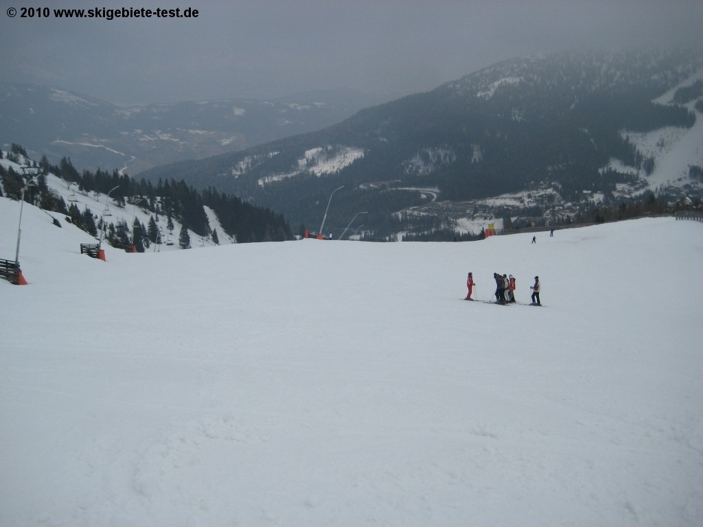 12 out of 62 kilometres of groomed terrain are very challenging (earmarked black). These slopes are only for those who are strong of leg, lung and courage. The slopes number 11 and 28 (please check the trail map) are the most challenging slopes of the ski resort. Extreme is the name of the game when racing down slope number 11 (the so-called Direttisima) we can therefore truly recommend this very long trail. Unfortunately 60% of all lift facilities are t-bar lifts. Often experts don´t like these uncomfortable and rather slow lifts. But most of the slopes at the Katschberg-Aineck ski resort are worth waiting for a little at the base stations of the lift facilities.