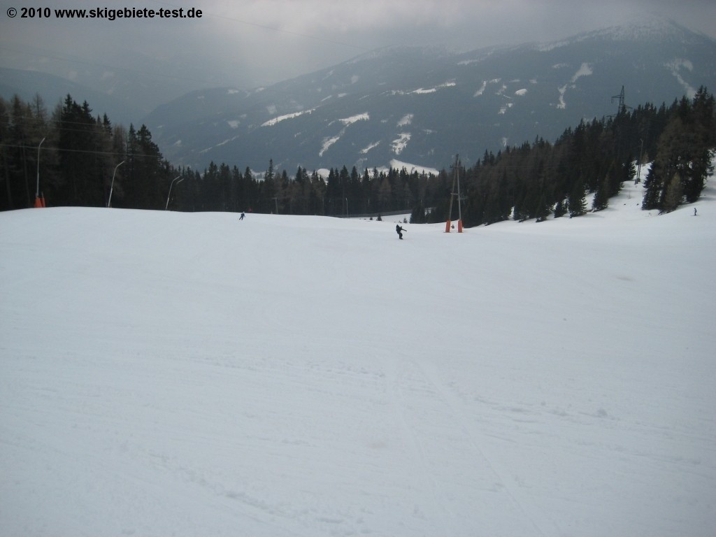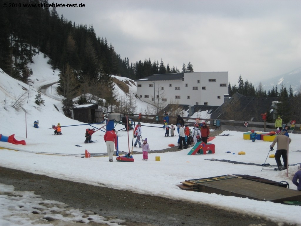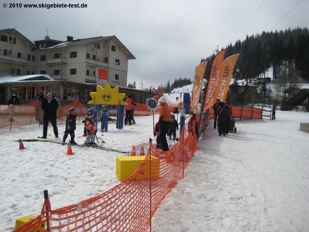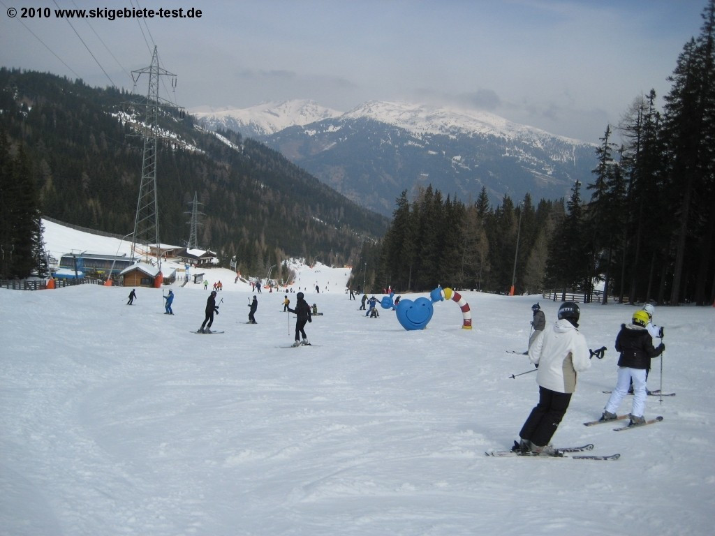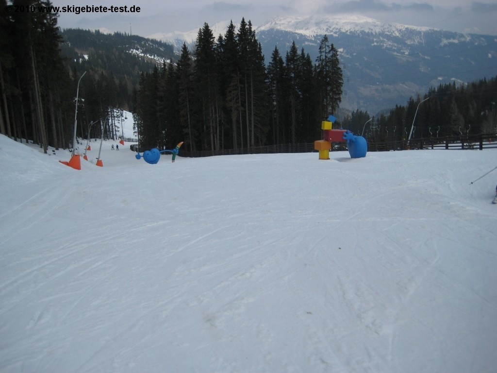 If you have a closer look at the trail map you can see immediately that there are plenty of fun-filled opportunities for children of all ages. The so-called “Katschi” mascot animates small children to use the practice lifts or to take some funny pictures, which can later be viewed on the website www.katschi.at. We recommend all families with small children to try the slope “Katschis Kinderwelt” (Katschi´s kids park). Chances are good your kids will never forget this fun ride through a course with funny fantasy figures and animals. Moreover there are some beautiful easy slopes and slopes of intermediate level around the base station at the mountain pass. If your children have had some experience in alpine skiing, most intermediate terrain (earmarked red) leading down from the Tschaneck mountain shouldn´t be too difficult. But be careful. The slopes around the Aineck mountain (2220 m) are rather long and probably too demanding for smaller children.