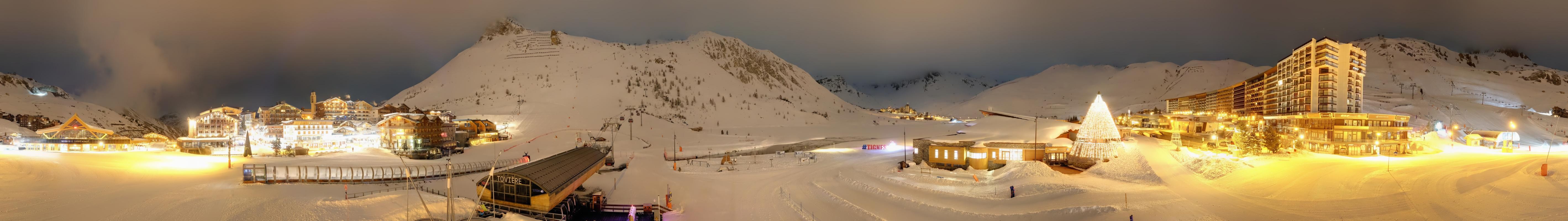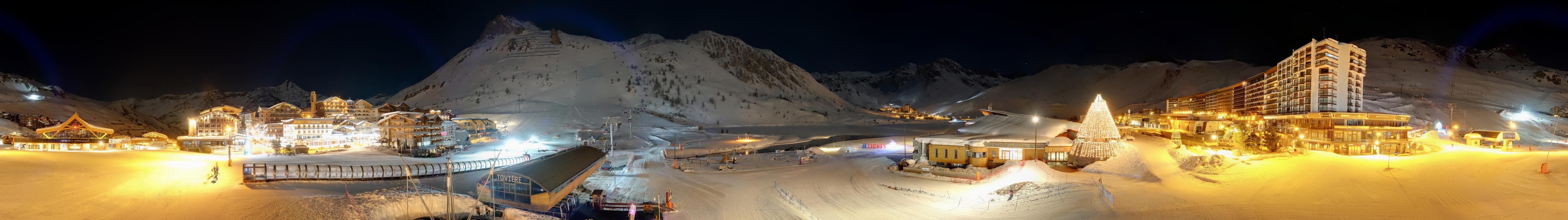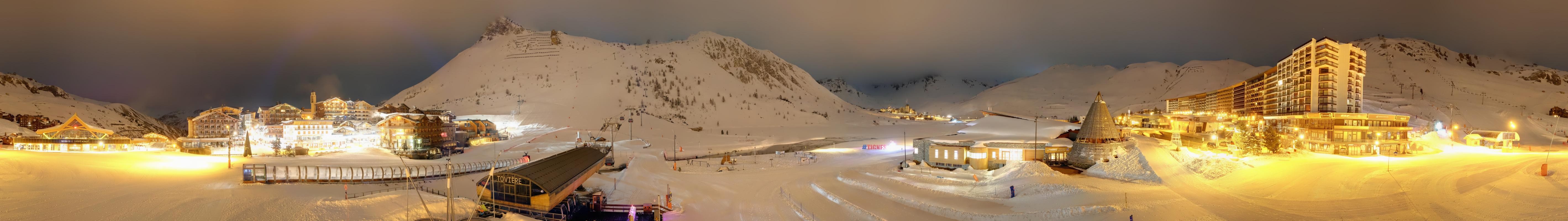 Panoramic view from Le Lac de Tignes to base station Toviere