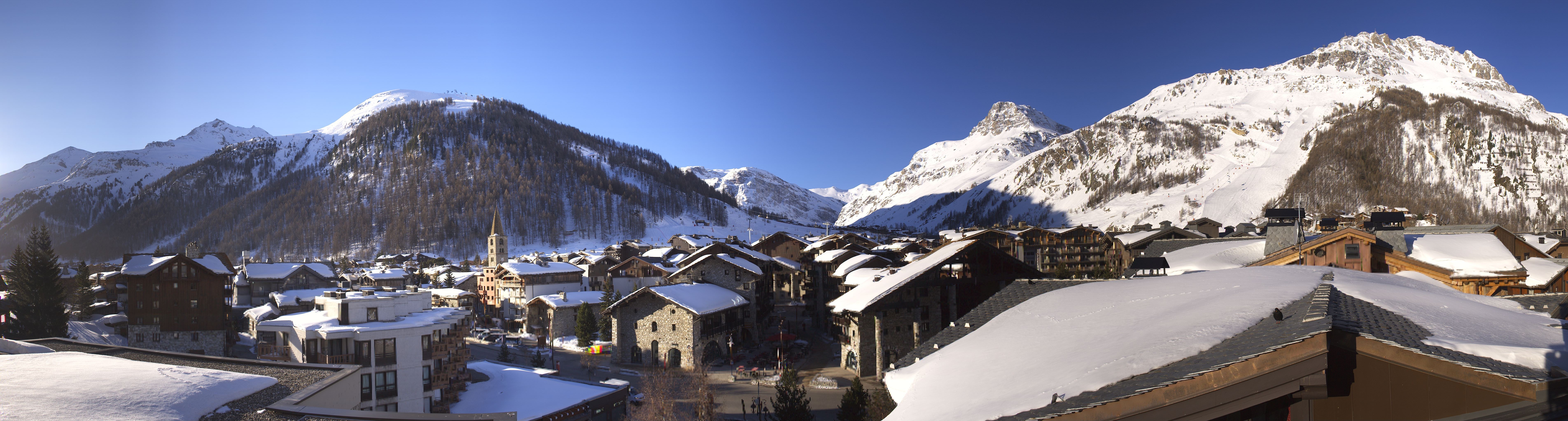 Archived webcam image showing Val d'Isère Village on 2 Apr 2026 at 08:36 07:00