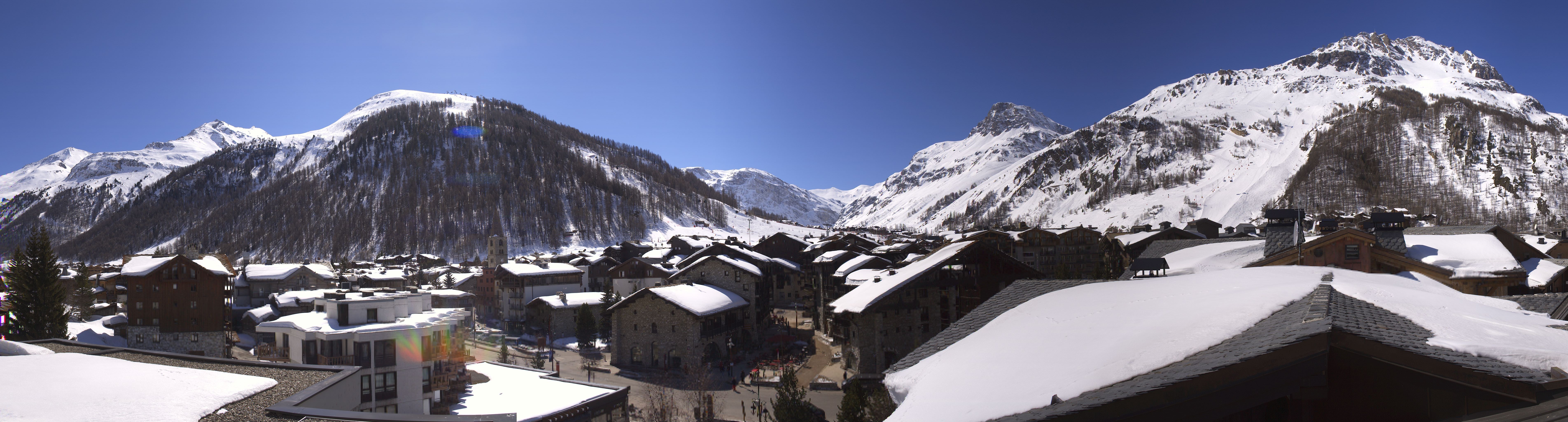 Archived webcam image showing Val d'Isère Village on 2 Apr 2026 at 12:36 11:00