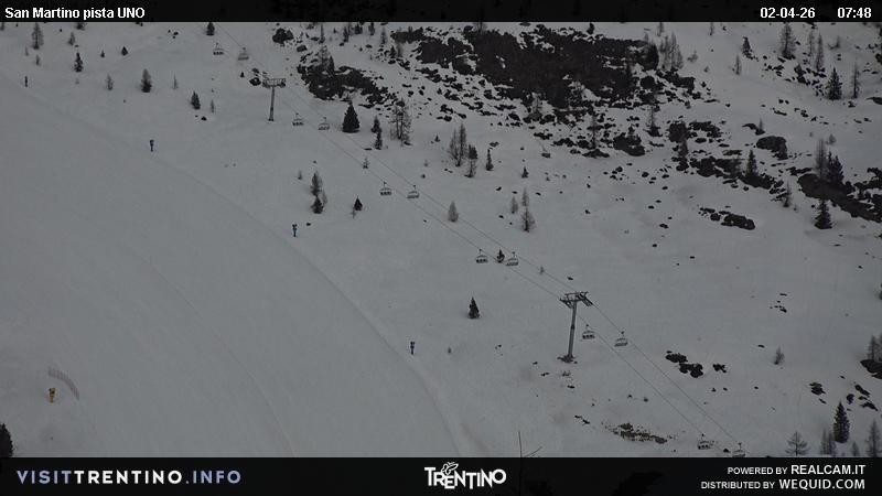 The webcam faces the ski run "Uno", which is considered one of the most impressive runs at Tognola at Carosello delle Malghe.