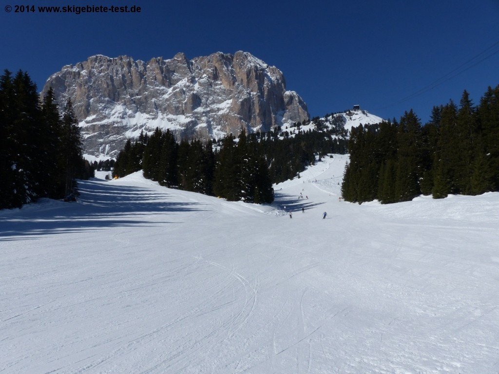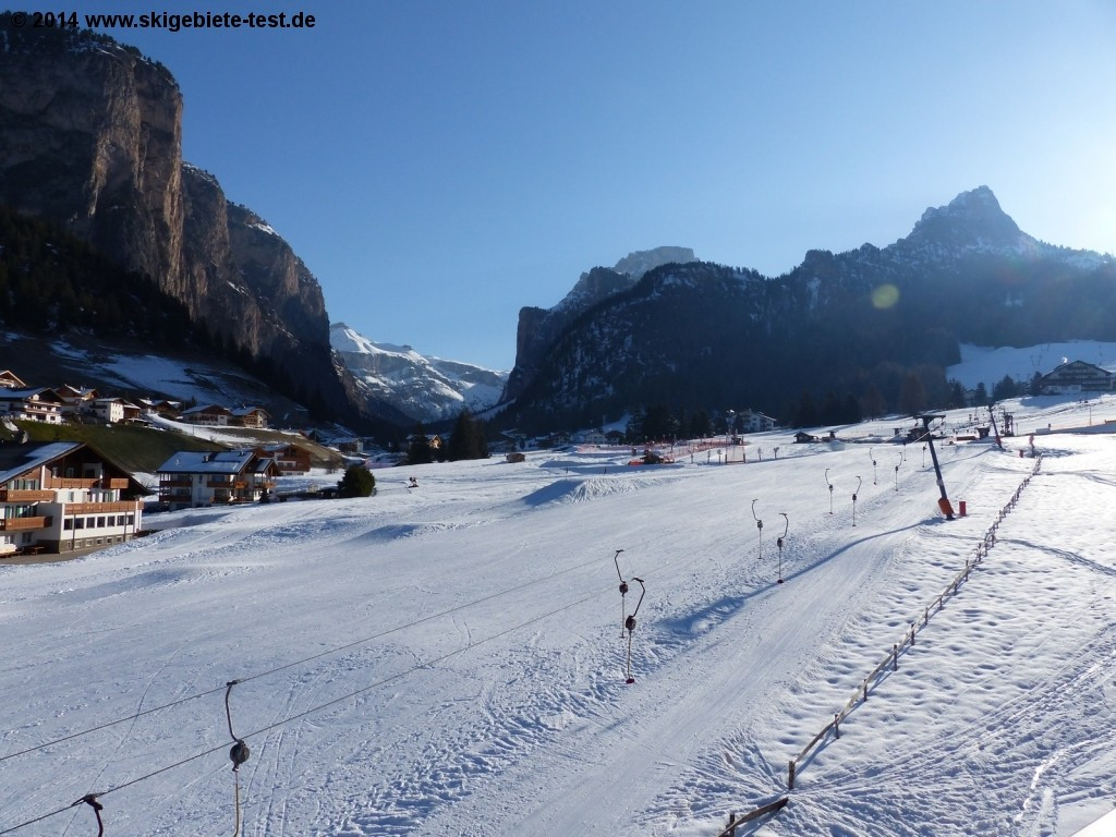 For families with children there are numerous kids parks where the little ones can practice their skiing technique calmly and without disturbances. In each of the three villages (St.Ulrich, St. Christina and Wolkenstein) you'll find practice slopes like that, which is especially praiseworthy. A little higher up the mountain in areas such as Monte Pana or the Seiser Alm, little skiers can learn skiing in separate spaces appropriate for children. Once they got the hang of it there are lots of nice blue and red marked slopes, which are perfect for first attempts on 'real slopes' (see category Beginners). In the valley parents can chose from six different ski schools to book a class for their kids. If parents with smaller or non-skiing children want to discover the slopes alone, that won't be a problem either. Daycare centers and nurseries are provided in all three towns. In the daycare center St. Christina they even provide care for children under the age of one. The only negative thing to all of this would be the relatively high prices for the ski passes.