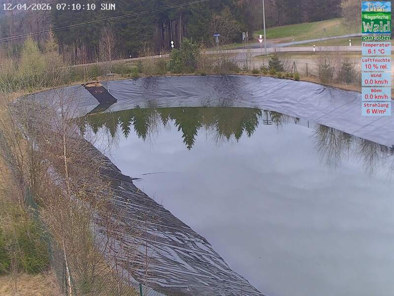 View to the north from the roof of the service building at the DSV nordic aktiv center Oberer Bayerischer Wald in Althütte. Among other tracks, the Grüß-Gott cross-country ski trail starts here.