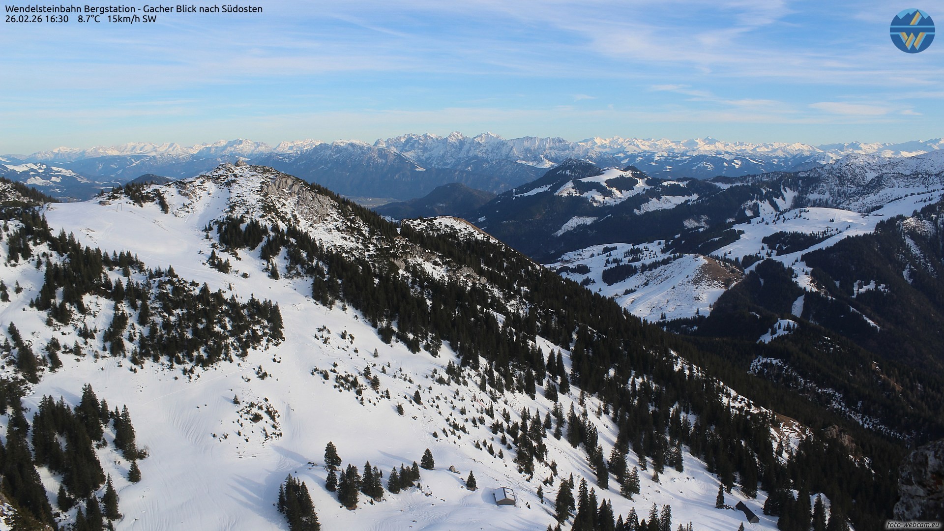 Outlook at Wendelsteinbahn mountain station direction southeast.