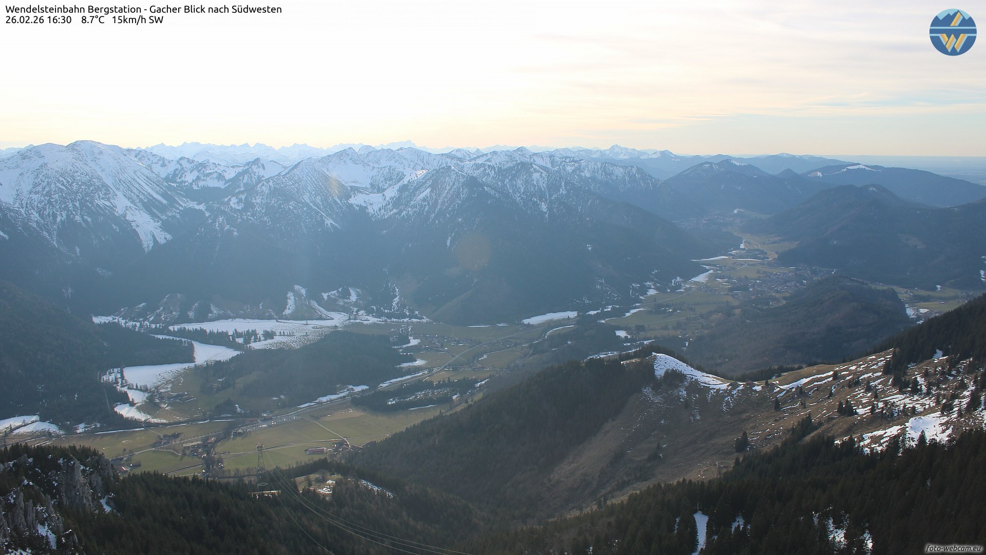 Outlook at the top station of Wendelsteinbahn. View direction southwest.