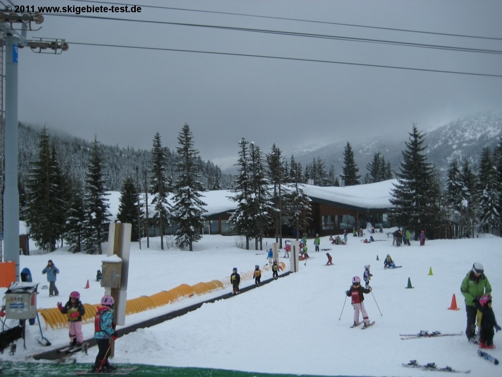 Families with small children will be best served on Whistler Mountain, the somewhat less challenging of the two. The ideal beginners’ area can is located around the midway terminal of the Whistler Village gondola up at the Olympic station. Besides the kids’ park, other easy (marked green) options for beginners include “Upper Fantastic,” “Upper Olympic” and “It Happens.” If your kids are already advanced enough to take on some longer trails, “Lower Olympic” (green) and the slightly more challenging “Lower Fantastic” (blue) run all the way back down to the base. Further family highlights on Whistler Mountain include the Tree Fort at the Bear Cub trail not far from the Big Red Express chair and the Family Zone at the Emerald Express chair.