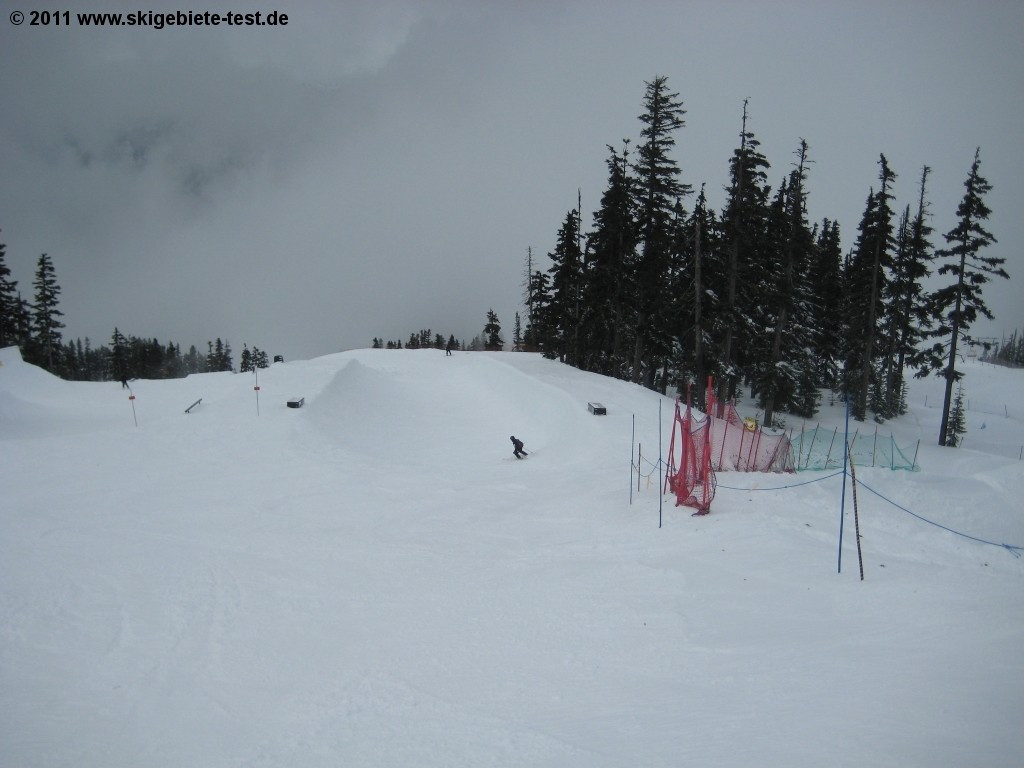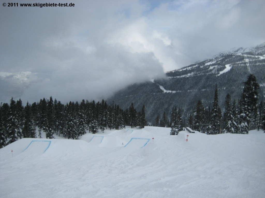 At Whistler it seems like everything is just a little bit bigger, higher and farther than what you’re used to, and its terrain parks are no exception! The Nintendo terrain park on Blackcomb is without question one of the largest and best terrain parks in not only Canada, but in the entire world. So we weren’t surprised to find that freestylers are only allowed into the Highest Level Park with a safety helmet and after having signed a waiver. The incredible “Nintendo Super Pipe” (found in the Nintendo terrain park), not to be confused with the smaller pipe located a bit higher up than the super pipe, is another fancy feature. But the kickers, rails, etc. at Whistler Blackcomb don’t only cater to experts; apart from the easier lines in the Nintendo terrain park, the Big Easy Terrain Garden not far from there also accommodates rookies.