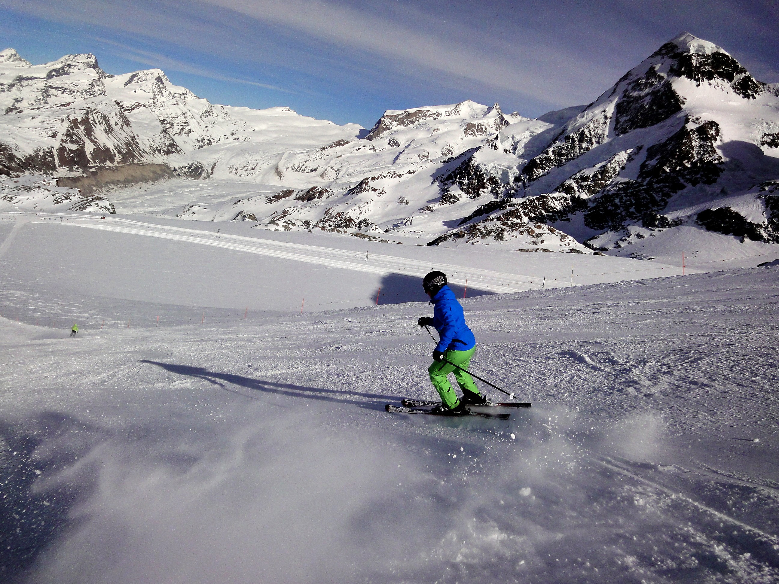 Zermatt is one of the few ski areas around the world where it is possible to ski on 365 days in the year. Even in the height of summer, more than 20 kilometres of runs are groomed on the glacier. With an altitude spanning between 1,524m (Valtournenche) and 3,899m (Klein Matterhorn), Zermatt is among the highest ski areas in Europe. Nevertheless, the operators do not want to leave anything to chance. As a result, up to 75% of the trails can be artificially prepared with snow cannons if required. The grooming teams get to work as early as the first week in October, installing the first of 900 snow makers and cannons. As this artificial preparation begins in autumn in Zermatt, it is often already possible for guests to enjoy the full trail network of 360 kilometres as early as the start or middle of December.