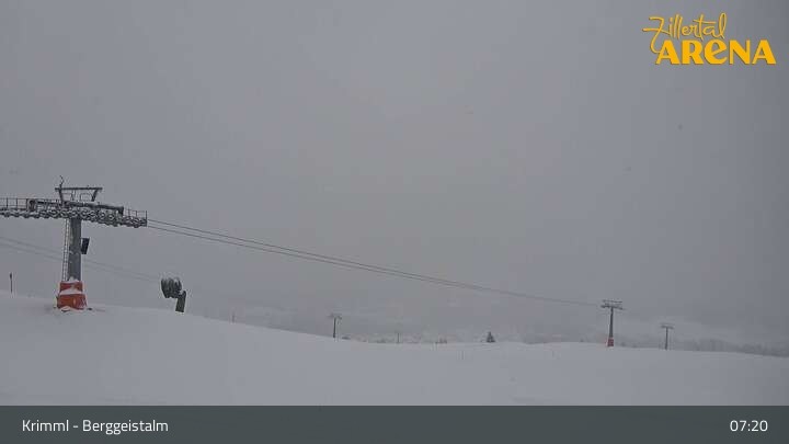 Archiviertes Webcam Bild: Zillertal Arena: Berggeistalm in Hochkrimml am 27.03.2026 um 07:03 Uhr 07:00