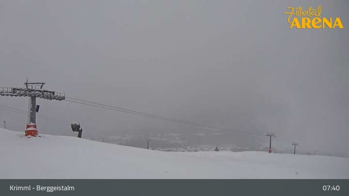 Archiviertes Webcam Bild: Zillertal Arena: Berggeistalm in Hochkrimml am 27.03.2026 um 08:03 Uhr 08:00