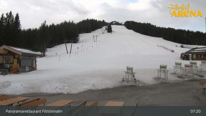 Archived webcam image showing Zillertal Arena: Panoramic Restaurant Filzsteinalm on 23 Mar 2026 at 07:41 06:00