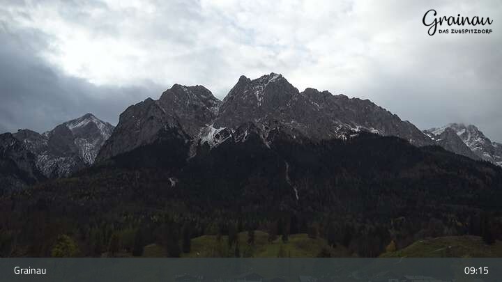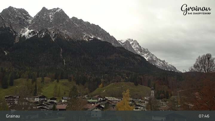 Panoramic view of the mountain village Grainau near Zugspitze, the highest mountain in Germany.