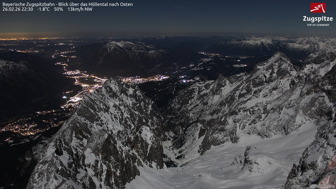 The webcam is located on top of the Zugspitze and offers a great view to the east.