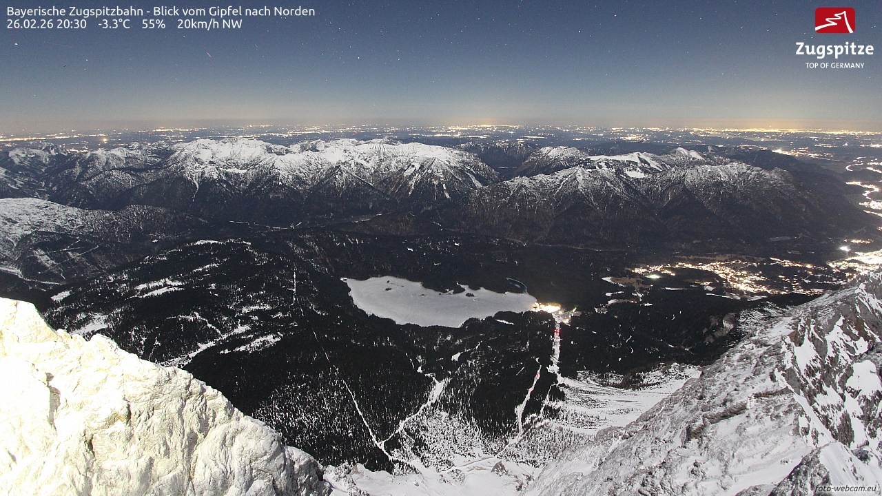 The webcam is located on top of the Zugspitze and offers a great view to the north.