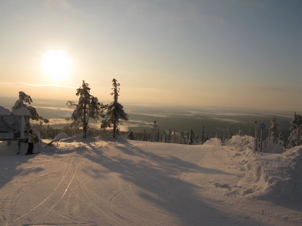 There are some ski areas in middle and south Finland but the larger and more popular ones are located in the northern part of the country – in Lapland. Since up there the pistes pass by alongside the Arctic Circle the lighting conditions are one of a kind. During the winter months the sun does not show at all and the pistes need to be illuminated by day. In spring skiers and snowboarders can enjoy the pistes from the early morning till late at night with sunshine throughout. In March and April a ski day can last up to 16 hours!