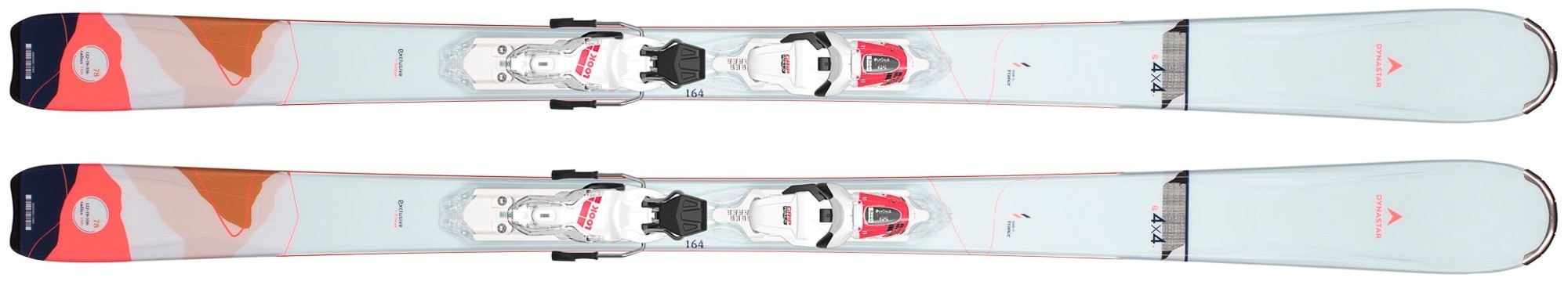 The women's Dynastar E 4x4 3 ski expands your terrain options with a wider platform and easy-handling feel. Our Hybrid Core uses a blend of wood and polyurethane to absorb vibration and give the ski a smooth ride. Its supple flex lets beginner and intermediate skiers progress into more terrain and enjoy varied snow conditions with confidence.